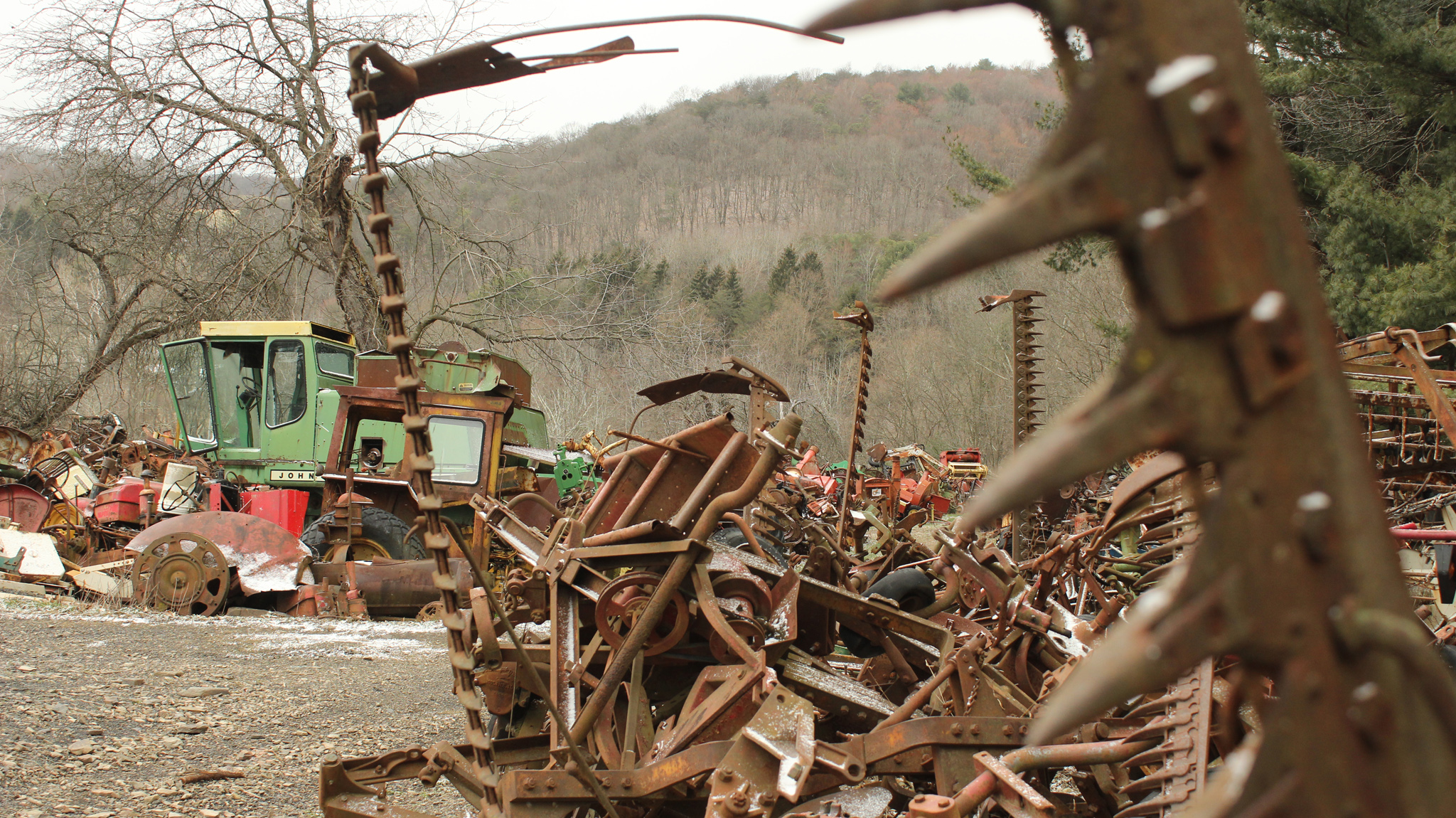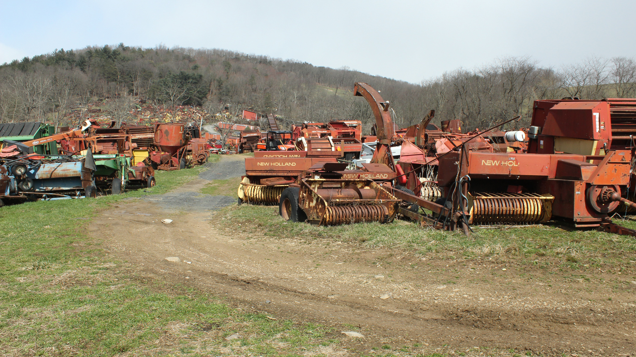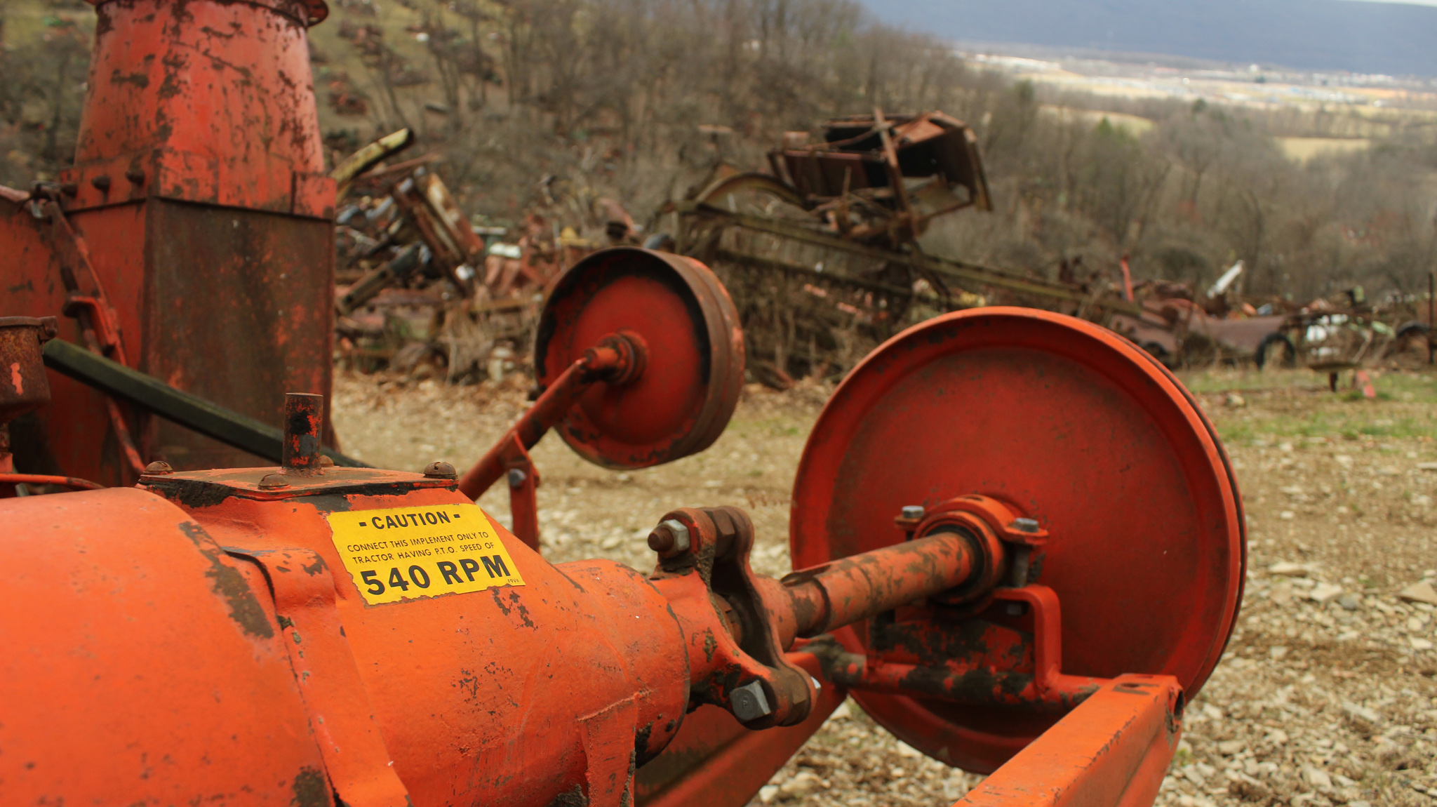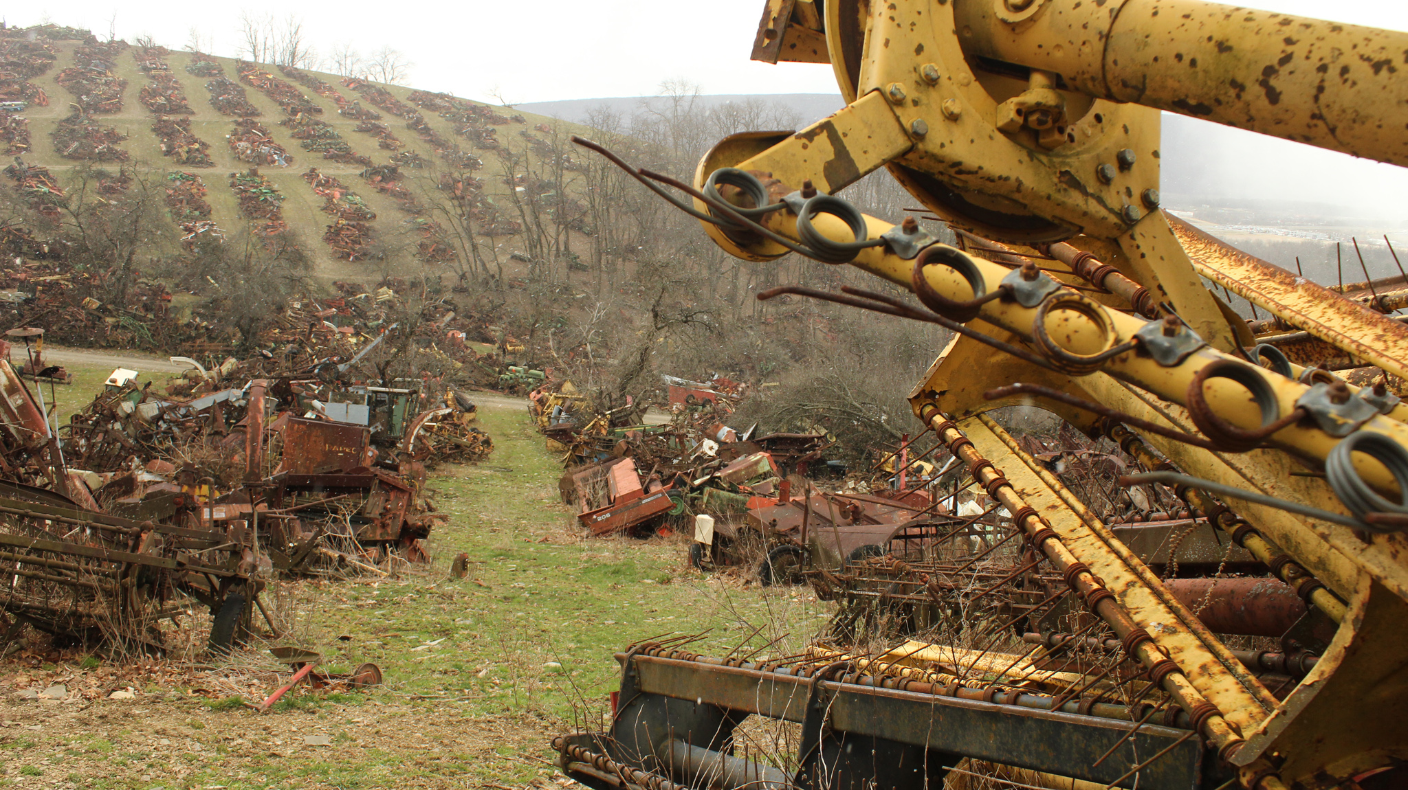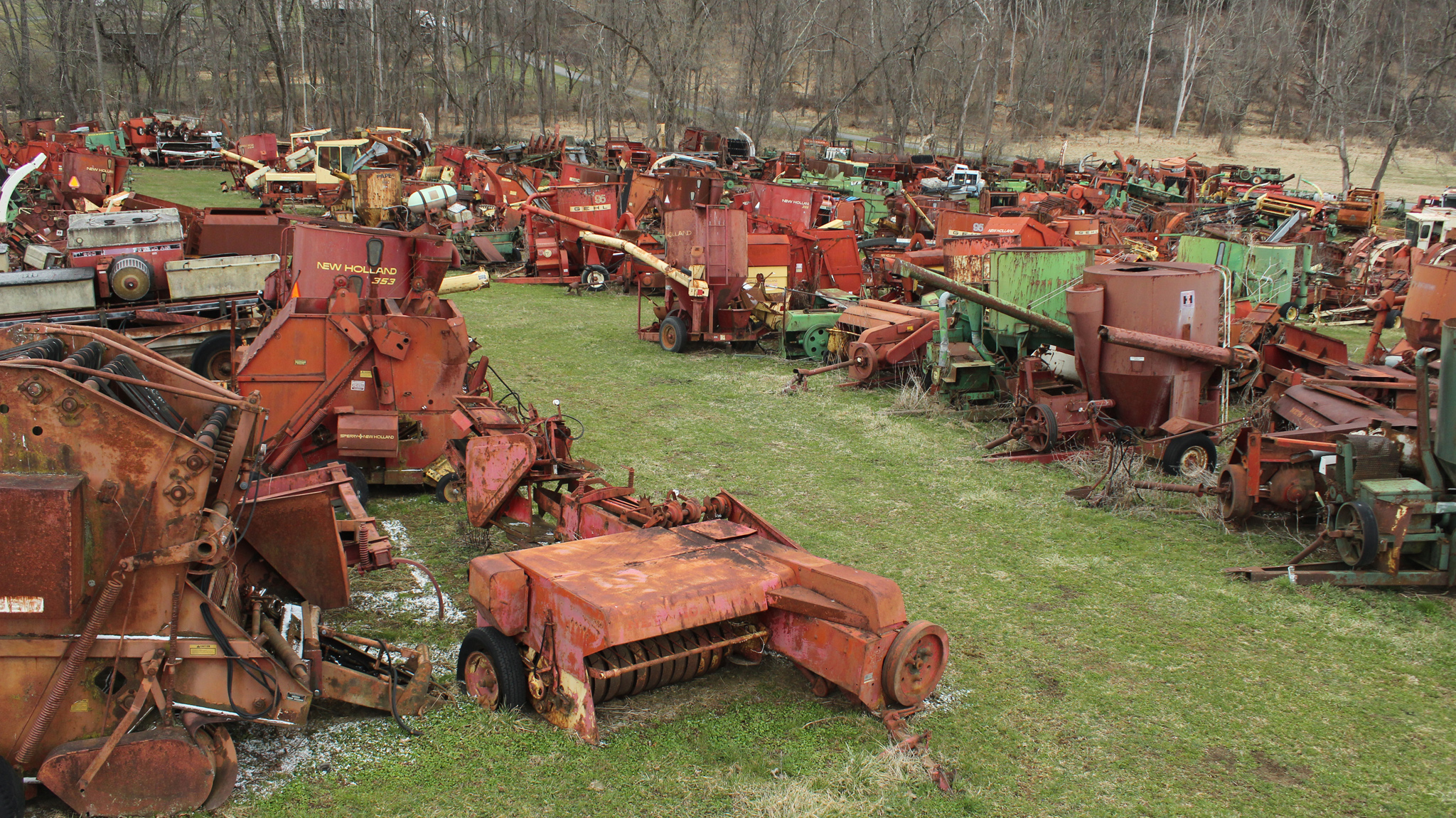 Drive north out of the small central Pennsylvania town of Muncy, alongside the West Branch Susquehanna River, up into the crinkled hills, and you’ll find it: the farm that grows machines. They sprout slowly as you approach: a landscape dotted with balers, manure spreaders, feed grinders, and more lining the old country road. Those errant shoots soon give way to clusters; round the final curve and those clusters explode into fields and fields of old agricultural equipment stretching on almost endlessly, covering the hills in twisted rows, undulating with the terrain and stretching out of sight.