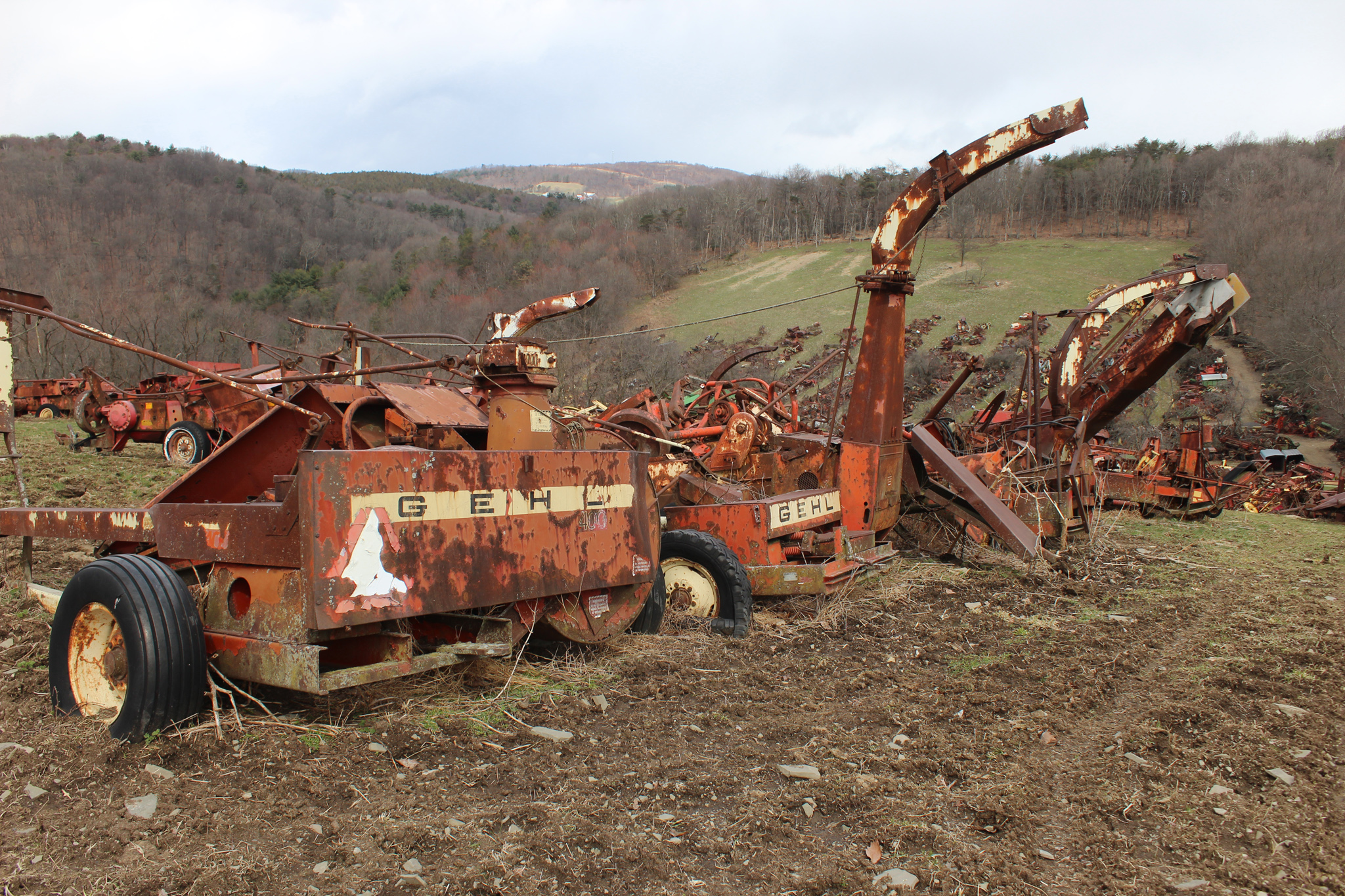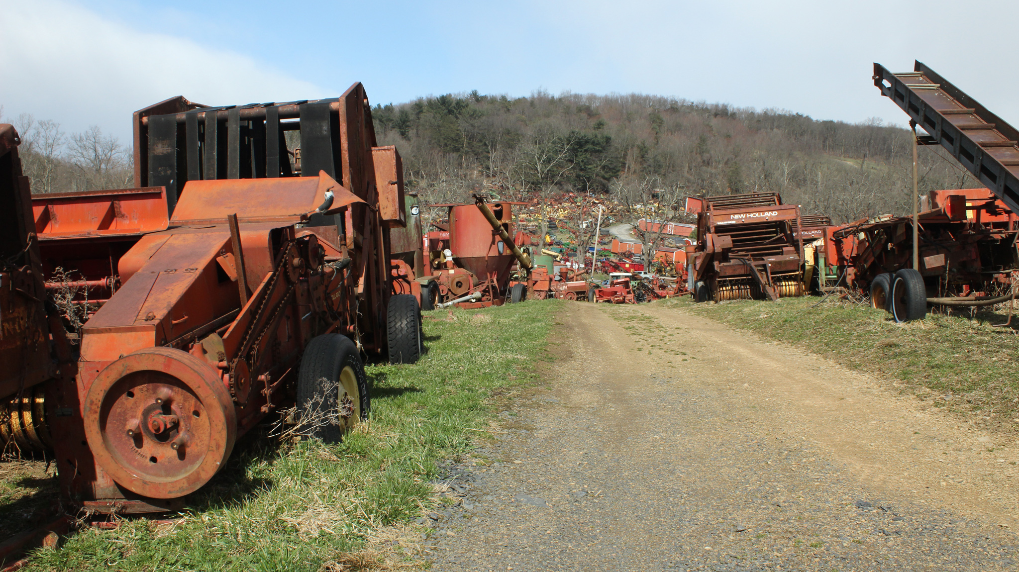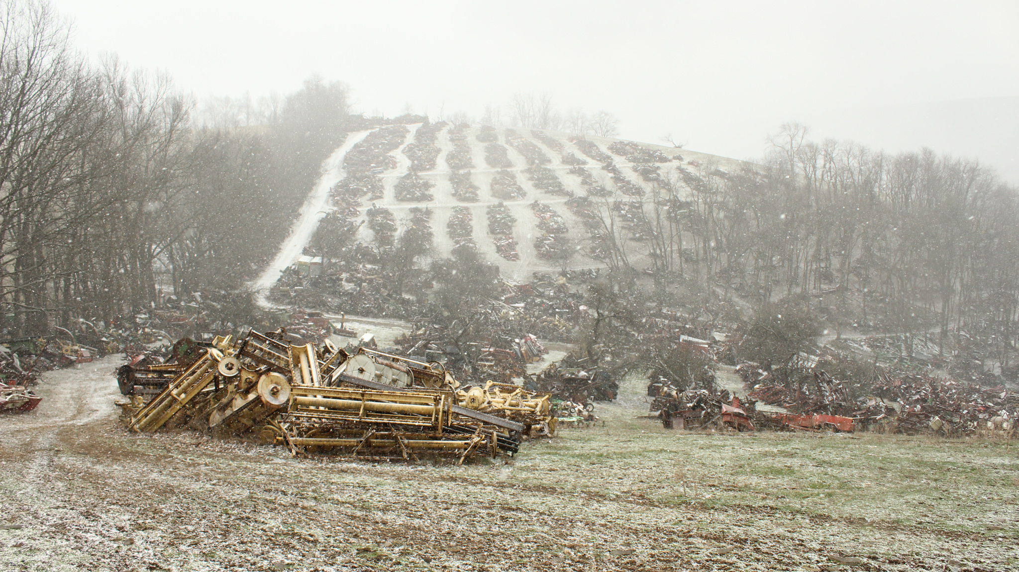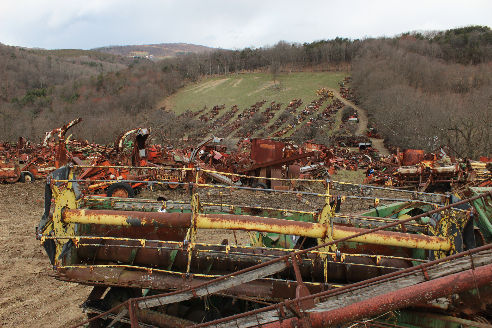 Drive north out of the small central Pennsylvania town of Muncy, alongside the West Branch Susquehanna River, up into the crinkled hills, and you’ll find it: the farm that grows machines. They sprout slowly as you approach: a landscape dotted with balers, manure spreaders, feed grinders, and more lining the old country road. Those errant shoots soon give way to clusters; round the final curve and those clusters explode into fields and fields of old agricultural equipment stretching on almost endlessly, covering the hills in twisted rows, undulating with the terrain and stretching out of sight.