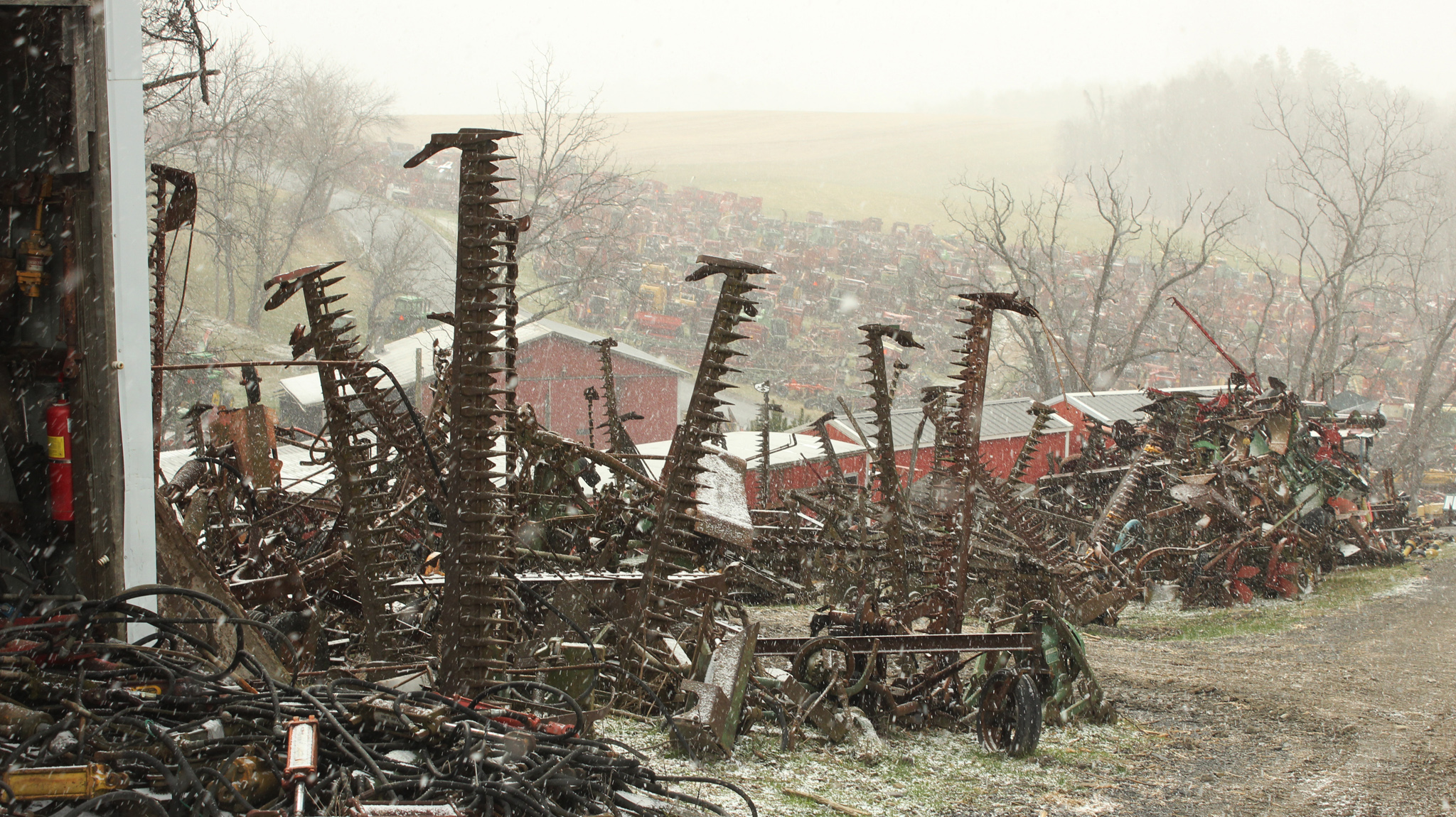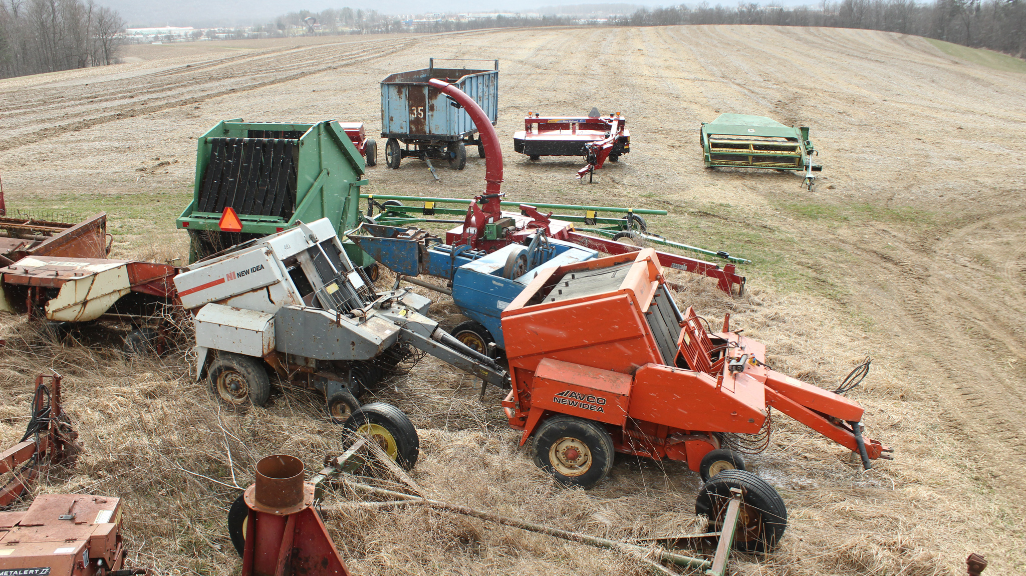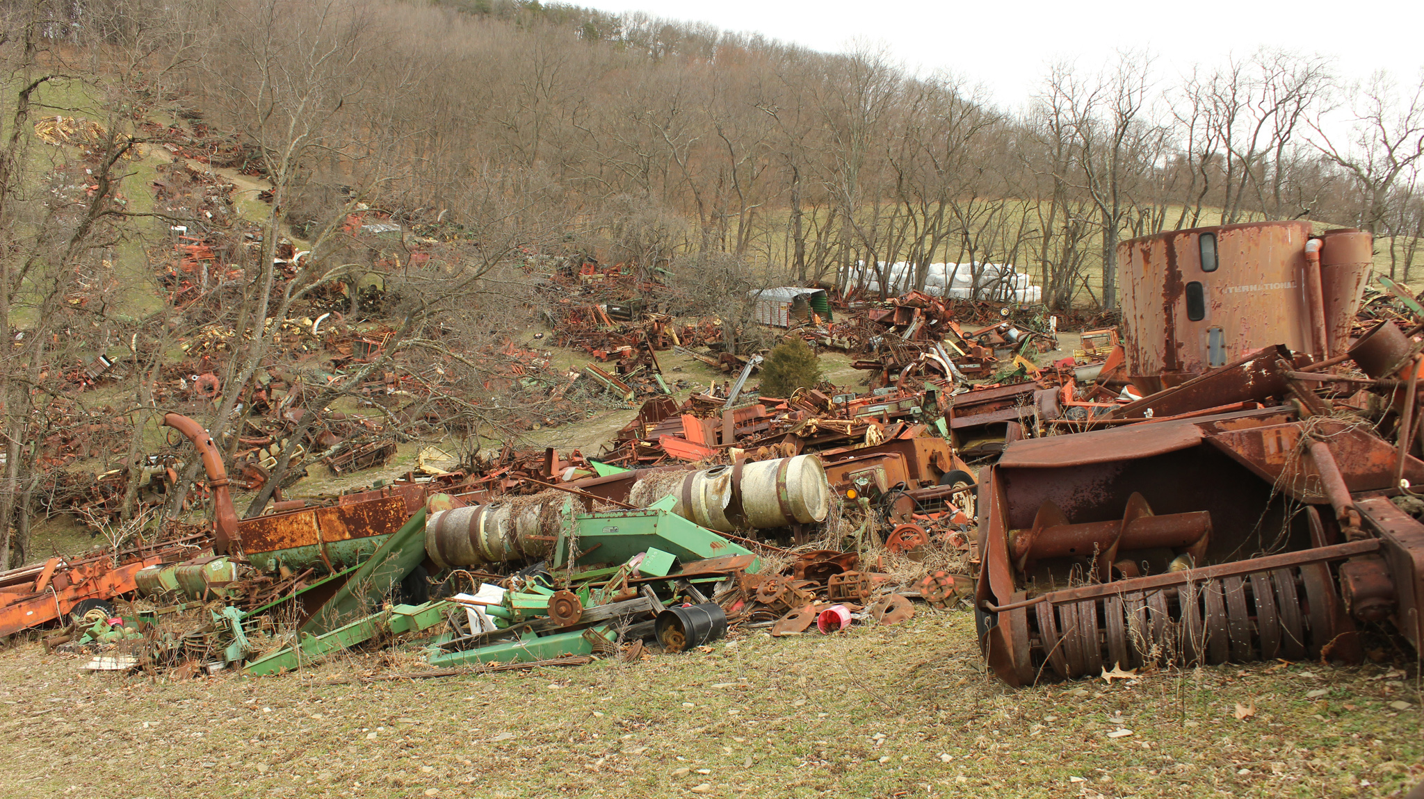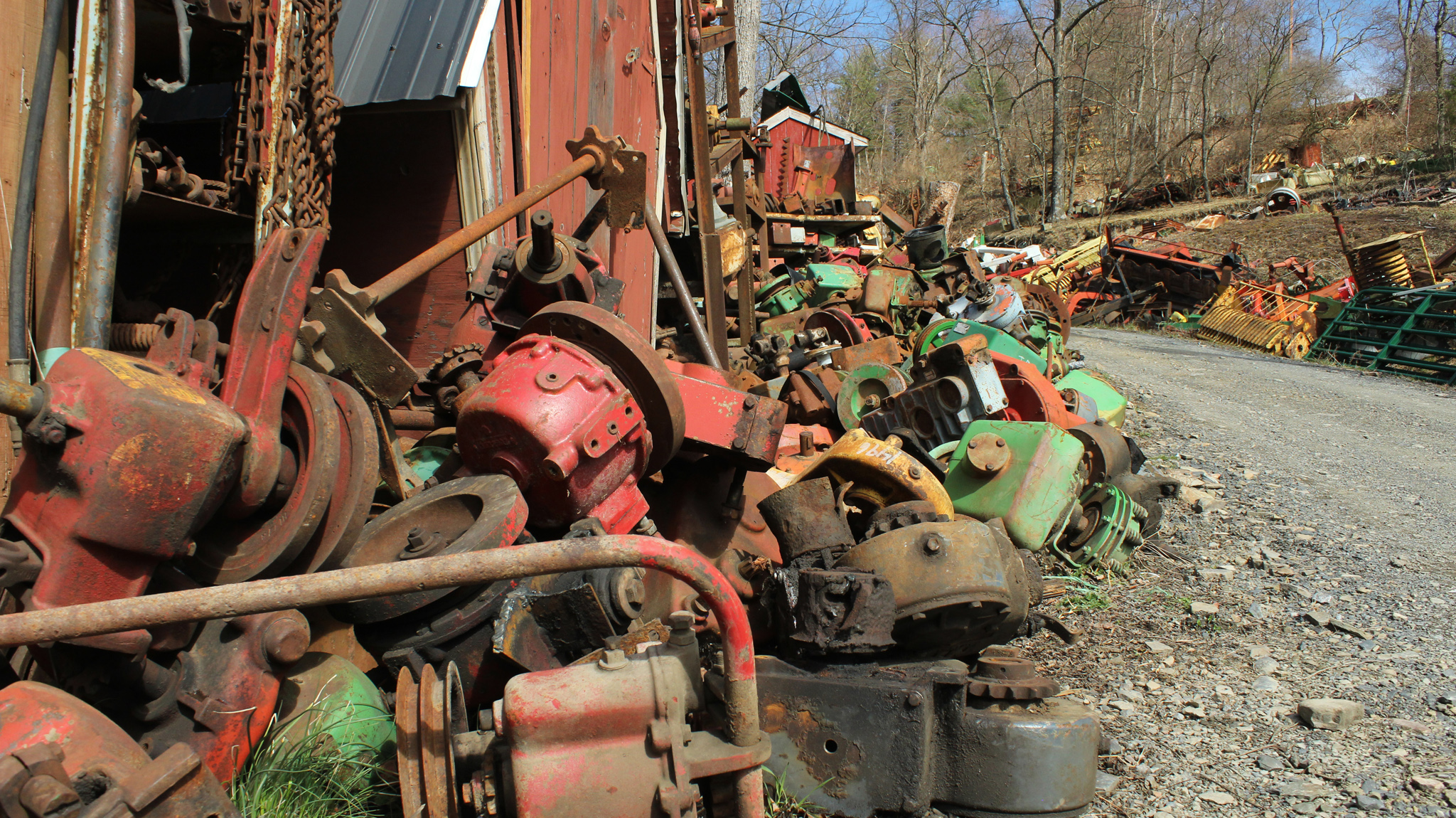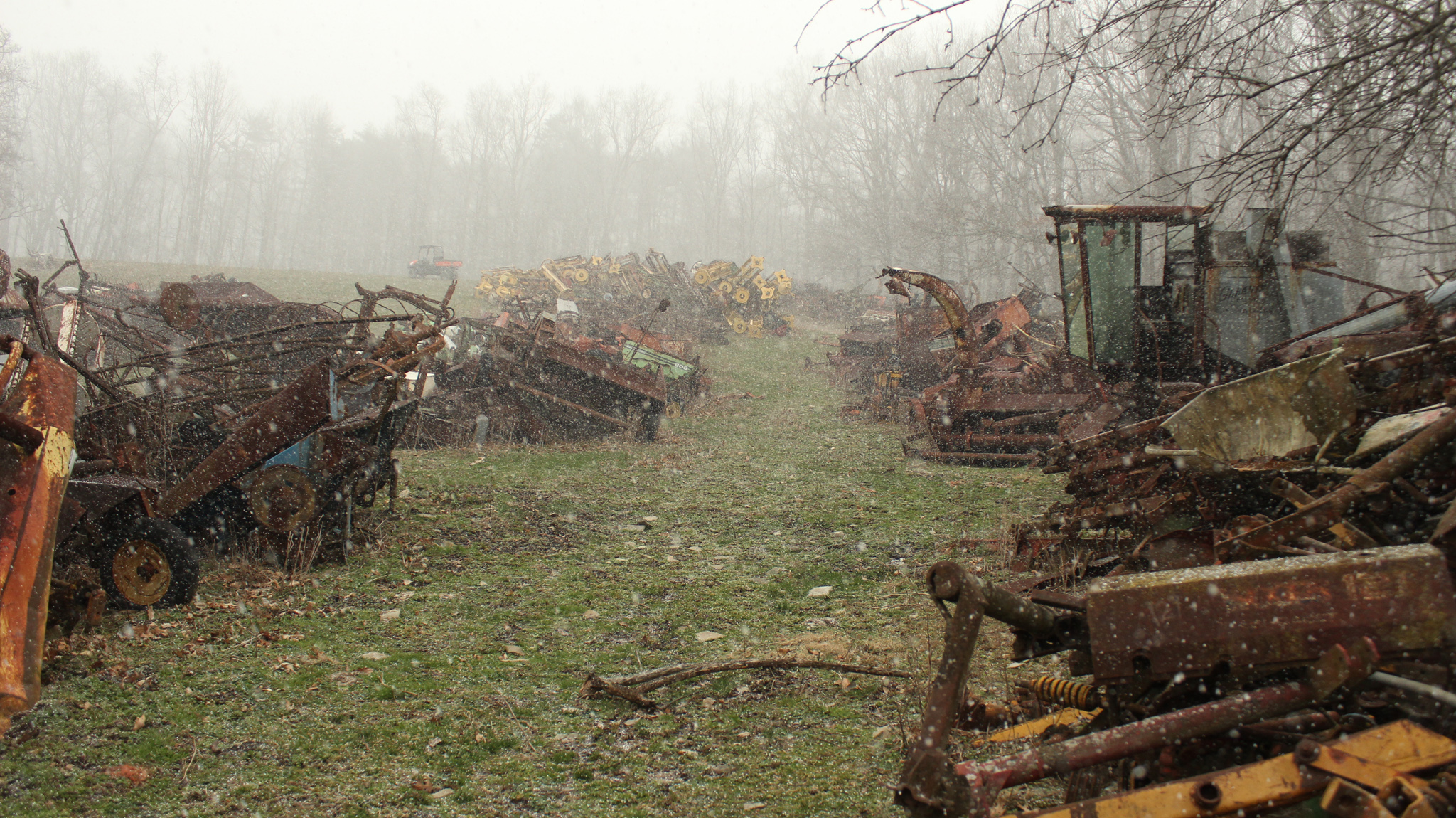 Drive north out of the small central Pennsylvania town of Muncy, alongside the West Branch Susquehanna River, up into the crinkled hills, and you’ll find it: the farm that grows machines. They sprout slowly as you approach: a landscape dotted with balers, manure spreaders, feed grinders, and more lining the old country road. Those errant shoots soon give way to clusters; round the final curve and those clusters explode into fields and fields of old agricultural equipment stretching on almost endlessly, covering the hills in twisted rows, undulating with the terrain and stretching out of sight.