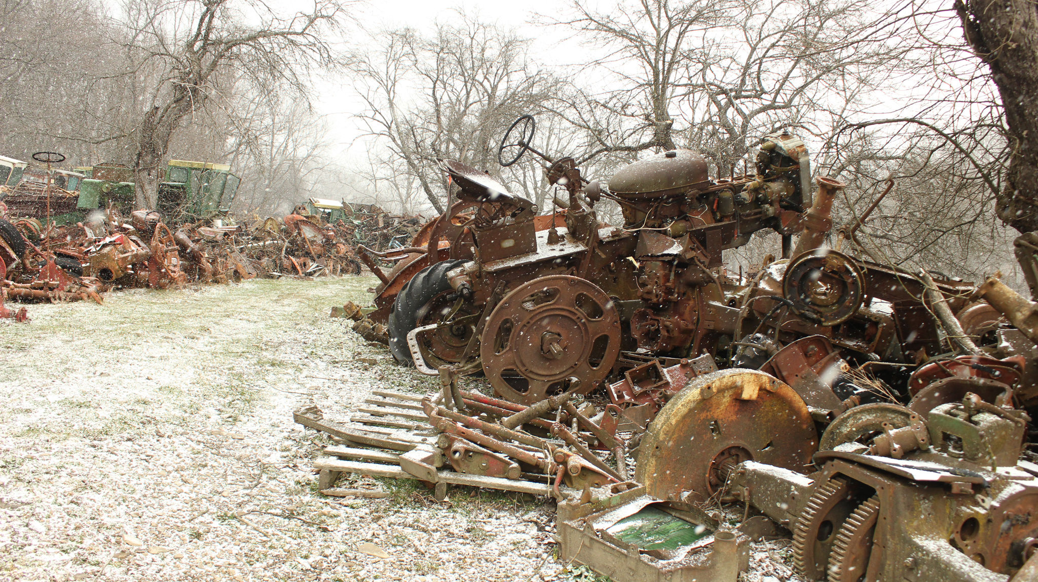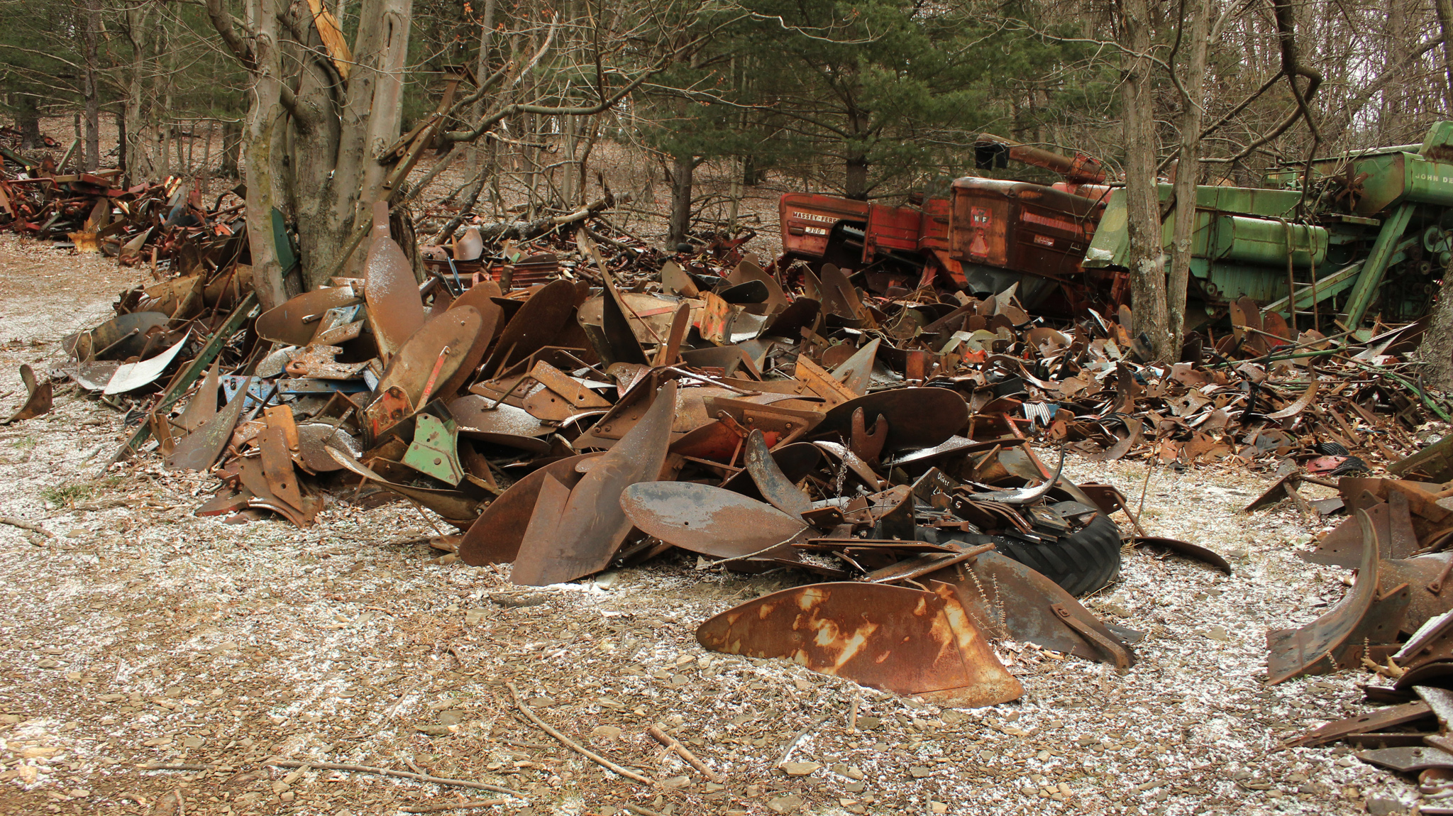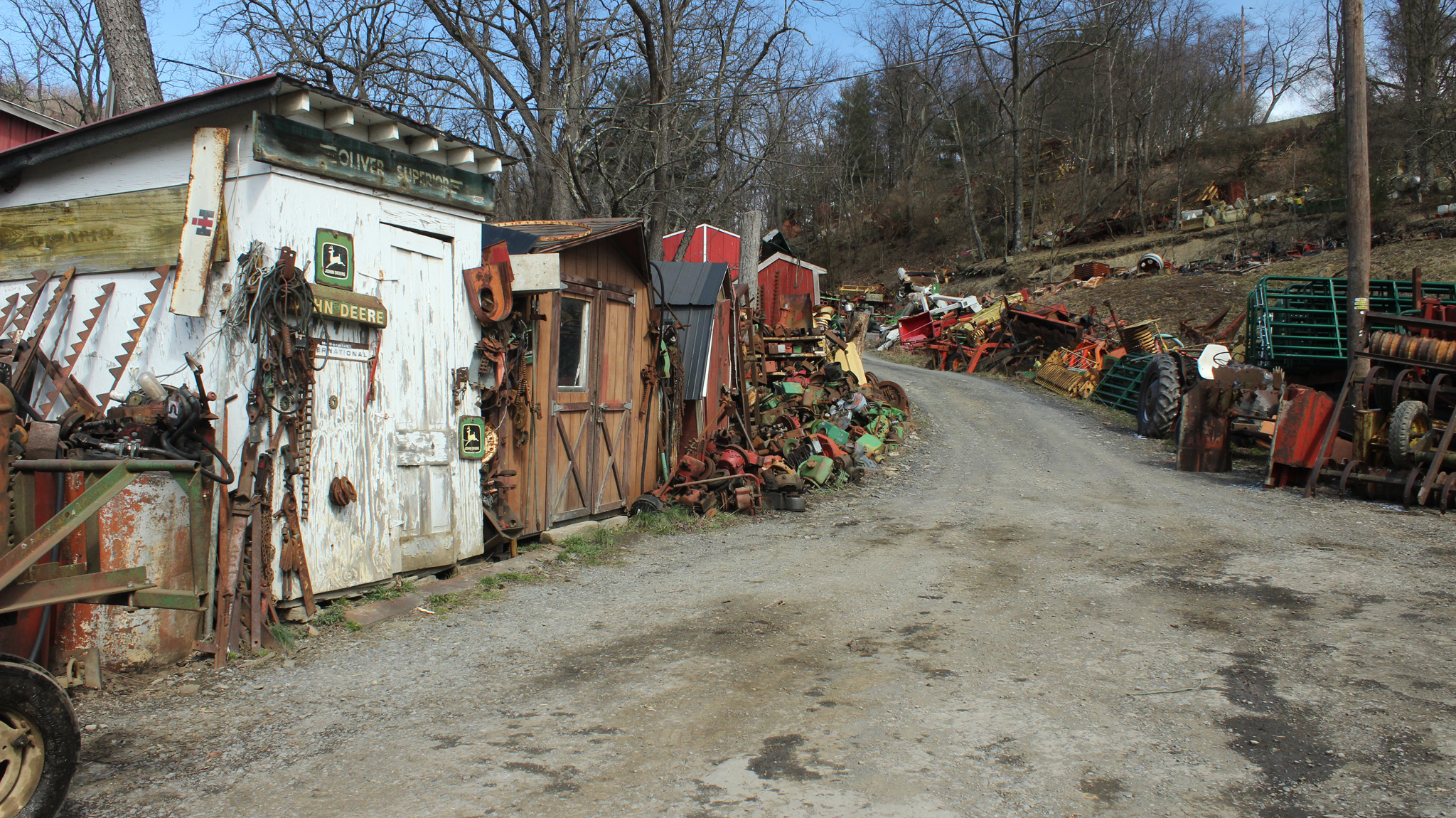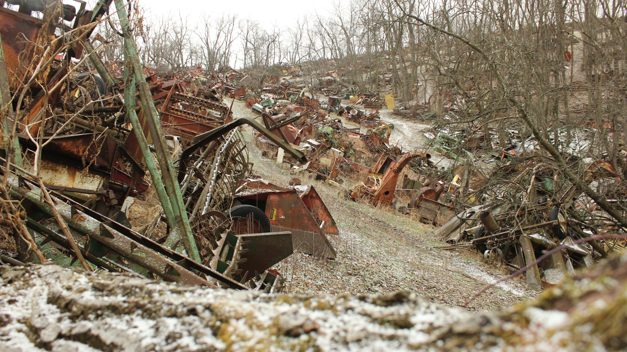 Drive north out of the small central Pennsylvania town of Muncy, alongside the West Branch Susquehanna River, up into the crinkled hills, and you’ll find it: the farm that grows machines. They sprout slowly as you approach: a landscape dotted with balers, manure spreaders, feed grinders, and more lining the old country road. Those errant shoots soon give way to clusters; round the final curve and those clusters explode into fields and fields of old agricultural equipment stretching on almost endlessly, covering the hills in twisted rows, undulating with the terrain and stretching out of sight.