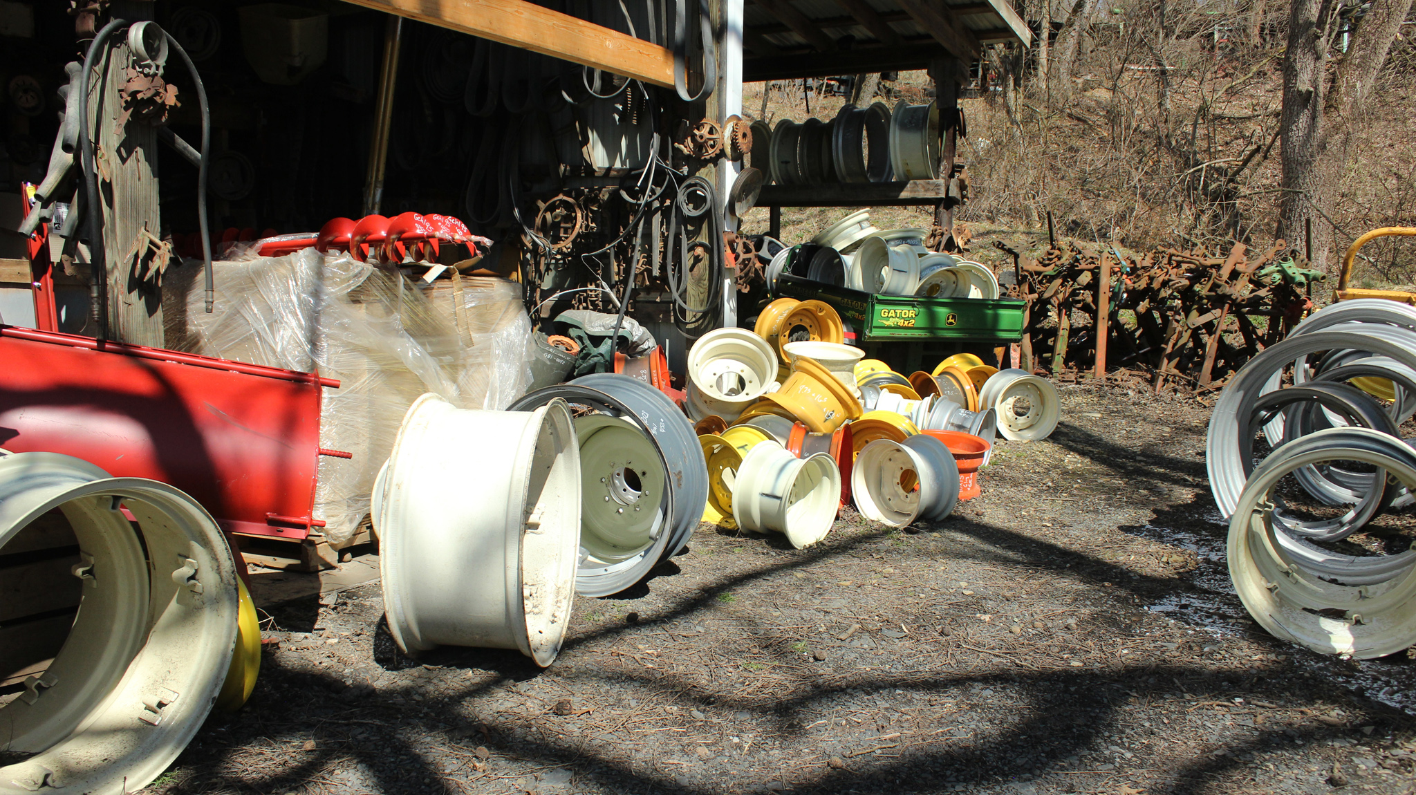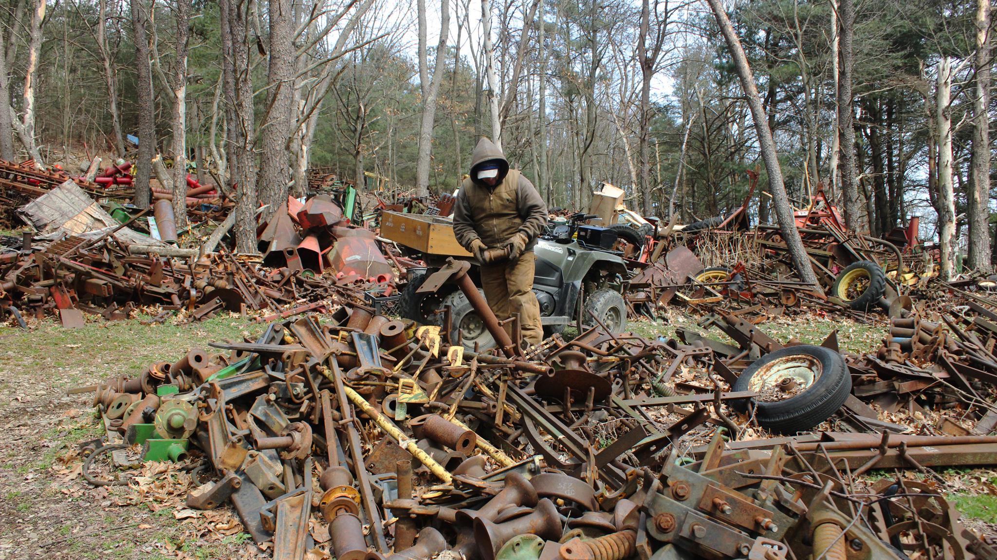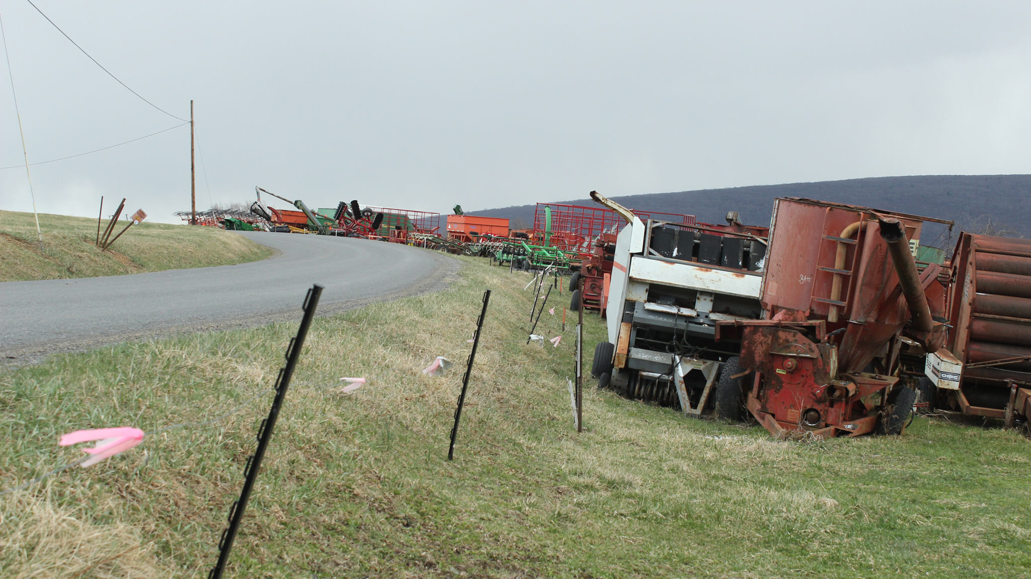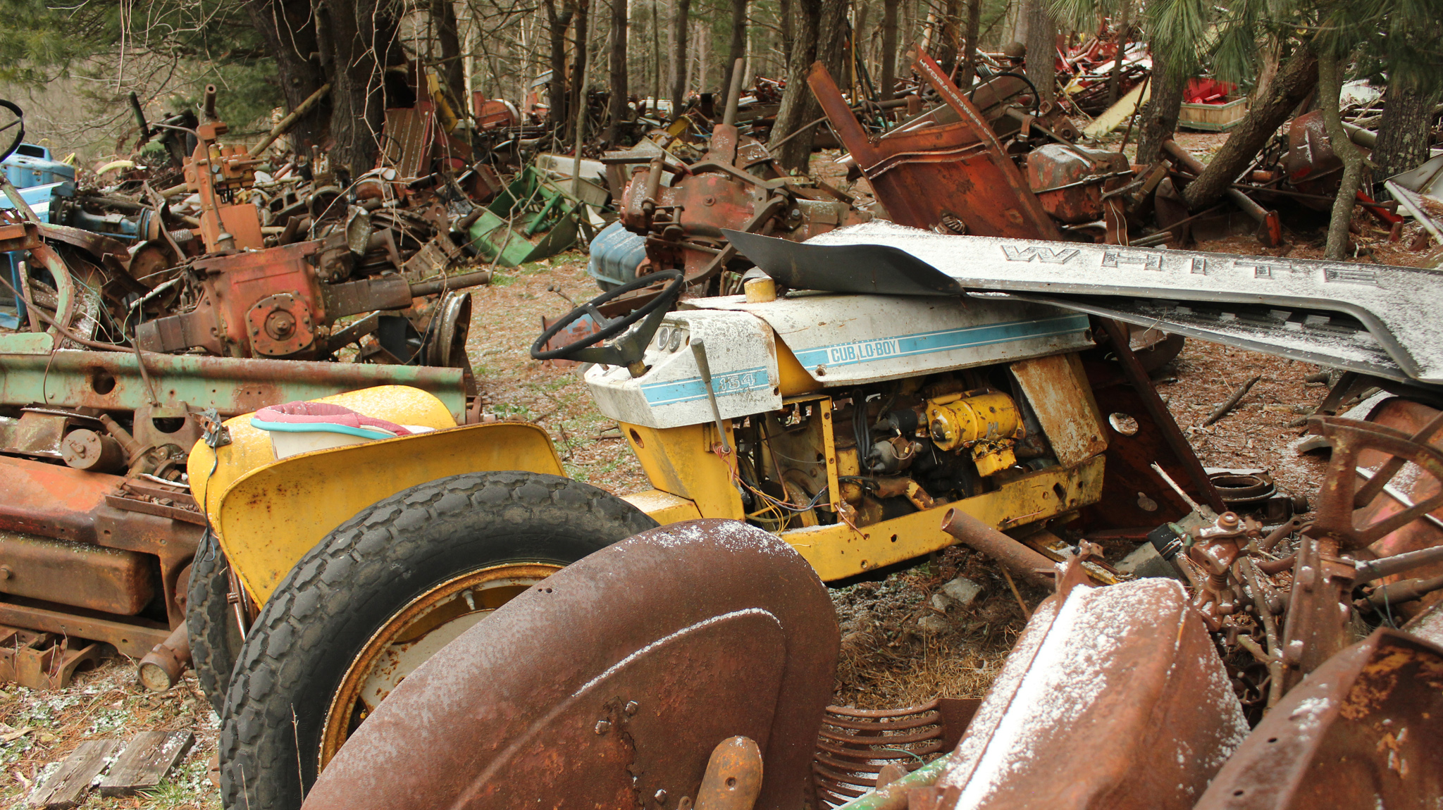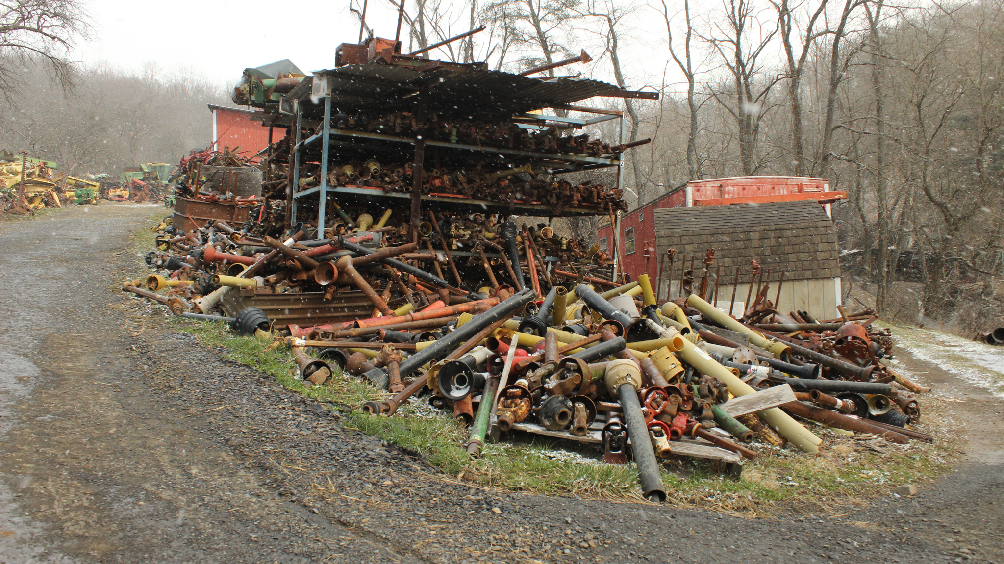 Drive north out of the small central Pennsylvania town of Muncy, alongside the West Branch Susquehanna River, up into the crinkled hills, and you’ll find it: the farm that grows machines. They sprout slowly as you approach: a landscape dotted with balers, manure spreaders, feed grinders, and more lining the old country road. Those errant shoots soon give way to clusters; round the final curve and those clusters explode into fields and fields of old agricultural equipment stretching on almost endlessly, covering the hills in twisted rows, undulating with the terrain and stretching out of sight.