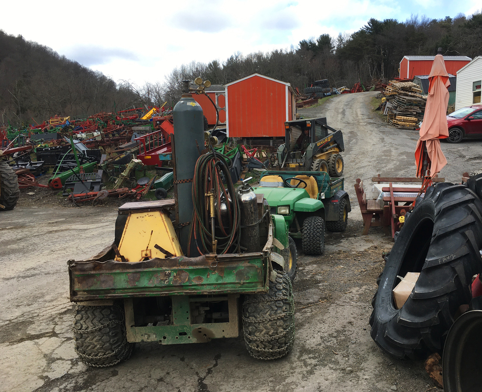 On the other side of the road sat the “newer” equipment. Less rusty and less densely packed, some of it looked ready to go right to work. Near the road sat a handful of lightly-used and even brand-new machines for sale, but the rest of the inventory would eventually be stripped for parts. A John Deere Gator laden with acetylene torches and a fire extinguisher waited ominously nearby.