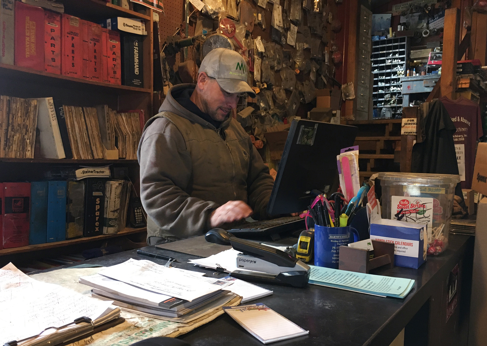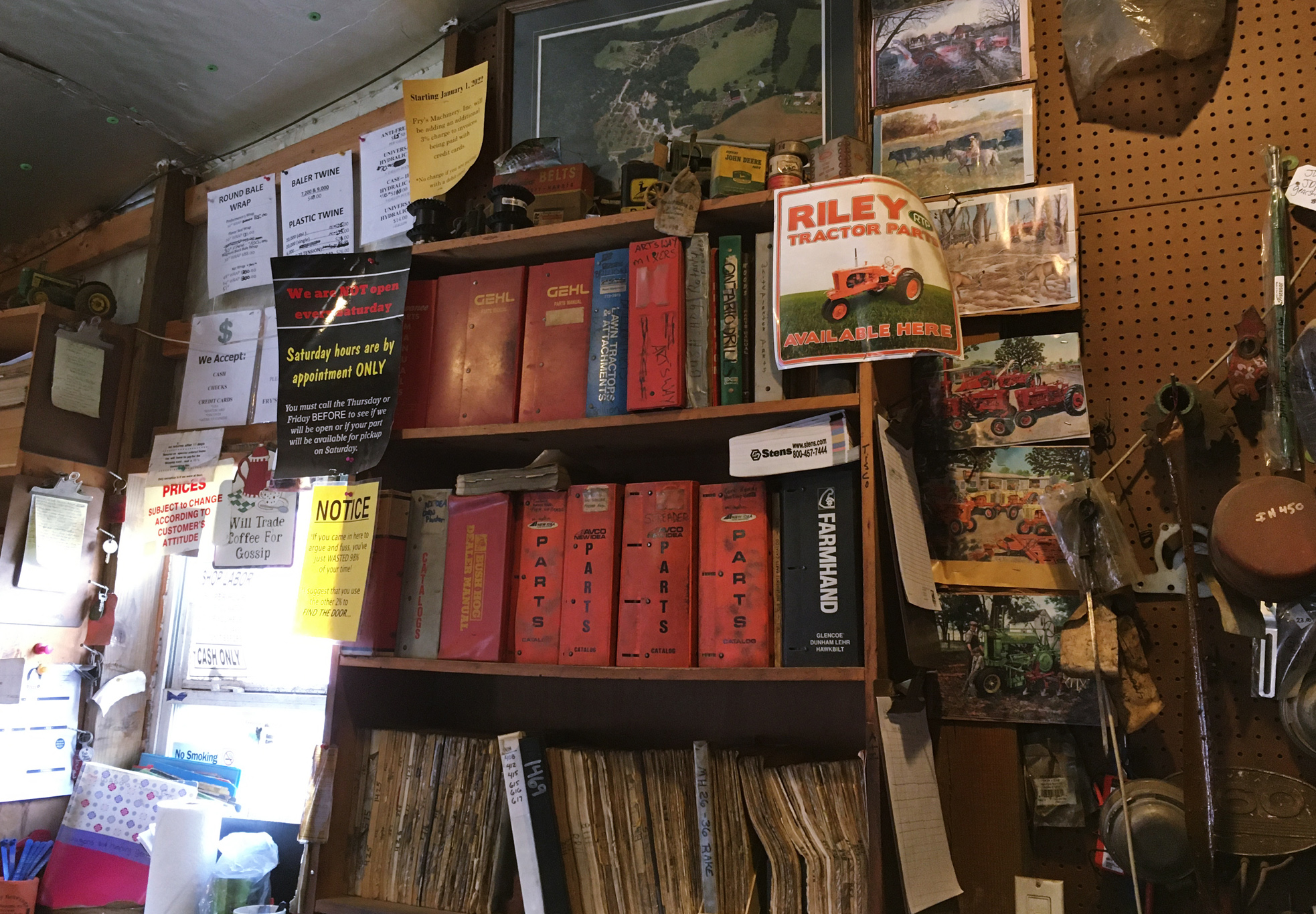 When exactly things are “slow” is unknown. Spring planting and fall harvest seasons are the busiest, but it really never stops. When I visited in March, the area around the office had a constant hum of activity, filled with people and engine noise. With a cigar and a grin, Floyd used an old skid-steer to feed cows and load equipment onto trailers. Amish men in straw hats bargained and bartered for parts. Friends and family congregated around the counter, coming in for a chance to talk shop and get out of the cold. The office phone rang nonstop, with both individuals and dealerships on the line looking for parts they couldn’t get anywhere else.