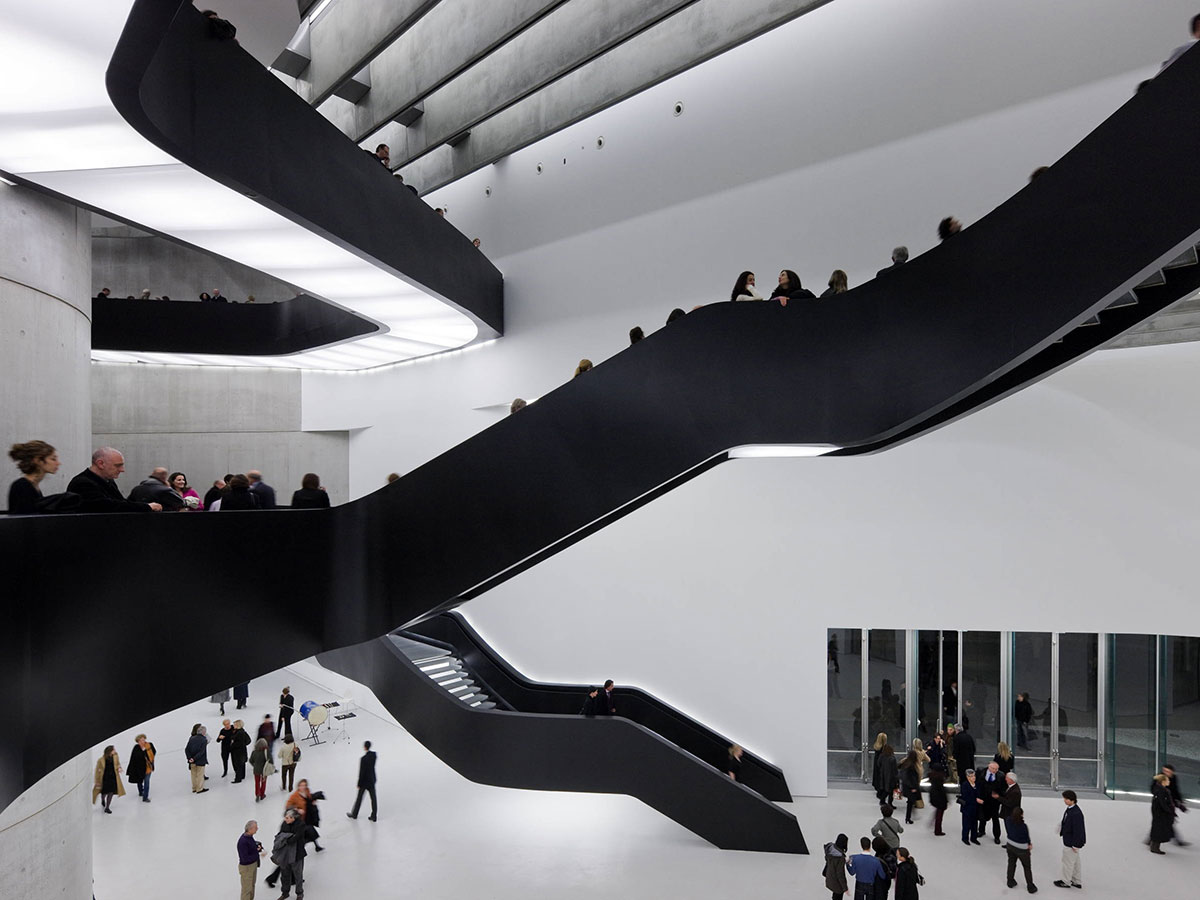 It’s a museum. On the same inspiration trip, the last thing we did was to go to the MAXXI Museum in Rome, which was also a Zaha Hadid building. What was cool about that building is—I guess it’s maybe similar to the shoe—there’s all these sculptural elements outside, but when you walk inside, you see them coming in. You almost don’t realize what’s inside and what’s outside. Just the structure alone of that building was really impressive and you don’t see that a lot in architecture. So, yeah, that building was really inspiring.