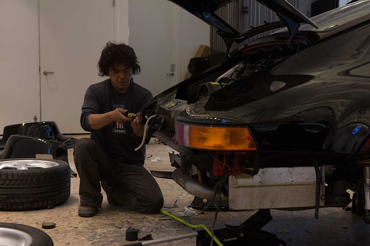 Day two of The Drive’s Porsche 911 build with master tuner Akira Nakai. Progress? You bet. The man behind RAUH-Welt Begriff body kits is still in our Brooklyn showroom, still chugging along, making magic. Watch the livestream here, and check out some photos of The Man at work, below.