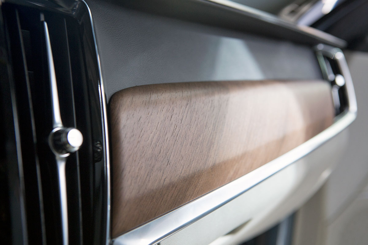 The interior is near flawless. Somehow, it gives dual impressions of slenderness and heartiness—no easy feat. The door pulls are shiny, mobius strip-like pieces that outclass the standard luxury-car chrome “L”—even Land Rover’s chunky interior latches. The headrests, as sculptural and whiplash-reducing as every other Volvo piece since the early Nineties, have been slimmed down. The matte-finish walnut is thinly sliced, but resonates like a good bookshelf when rapped. Nothing moves with the heaviness of Bentley’s interior piece, instead it glides serenely. It’s graceful stuff.