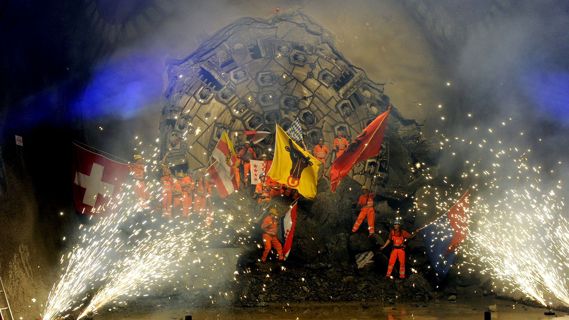 A controlled blast 23 June 2006 removes a rock formation called Nollen over Gurtnellen that threatened to fall, endangering traffic on the Gotthard route connecting Switzerland to Italy. Authorities decided to blast the cliff face after two German citizen died from a falling rocks 31 May 2006., MICHELE LIMINA/AFP/Getty ImagesCaterpillars are operate inside the construction site for the Gotthard Base Tunnel on April 19, 2007 near Sedrun, Switzerland. Deep beneath the Alps, the Swiss are building a high-speed rail link between Zurich and Milan. At 57 kilometres (35 miles) The Gotthard Base Tunnel will be the world's longest tunnel. A key feature of the project, which is new to alpine transport, is the fact that the entire railway line will stay at the same altitude of 500 metres (1,650ft) above sea level. This will allow trains using the line to reach speeds of 240kmh (149mph), reducing the travel time between Zurich and Milan from today's four hours to just two-and-a-half. The completion is planned for 2018., Johannes Simon/Getty ImagesA giant drill removes Alpine rocks at the construction site for the Gotthard Base Tunnel on April 19, 2007 near Sedrun, Switzerland. Deep beneath the Alps, the Swiss are building a high-speed rail link between Zurich and Milan. At 57 kilometres (35 miles) The Gotthard Base Tunnel will be the world's longest tunnel. A key feature of the project, which is new to alpine transport, is the fact that the entire railway line will stay at the same altitude of 500 metres (1,650ft) above sea level. This will allow trains using the line to reach speeds of 240kmh (149mph), reducing the travel time between Zurich and Milan from today's four hours to just two-and-a-half. The completion is planned for 2018., Johannes Simon/Getty ImagesBase Tunnel on April 19, 2007 near Sedrun, Switzerland. Deep beneath the Alps, the Swiss are building a high-speed rail link between Zurich and Milan. At 57 kilometres (35 miles) The Gotthard Base Tunnel will be the world's longest tunnel. A key feature of the project, which is new to alpine transport, is the fact that the entire railway line will stay at the same altitude of 500 metres (1,650ft) above sea level. This will allow trains using the line to reach speeds of 240kmh (149mph), reducing the travel time between Zurich and Milan from today's four hours to just two-and-a-half. The completion is planned for 2018., Johannes Simon/Getty ImagesGotthard Base Tunnel work continues on November 11, 2011 in Pollegio, Switzerland. The Gotthard Base Tunnel is a railway tunnel that will run for 54km through the Swiss Alps, making it the longest railway tunnel in the world. The project is scheduled for completion by 2016., Pier Marco Tacca/Getty ImagesGotthard Base Tunnel work continues on November 11, 2011 in Pollegio, Switzerland. The Gotthard Base Tunnel is a railway tunnel that will run for 54km through the Swiss Alps, making it the longest railway tunnel in the world. The project is scheduled for completion by 2016., Pier Marco Tacca/Getty ImagesThe tunnel drilling machine “Sissi” breaks through the last section of the Gotthard Base Tunnel near Sedrun in the canton of Grisons, Switzerland, Oct. 15, 2010. With 57 kilometers (35-miles) the new St. Gotthard tunnel is the world's longest tunnel. The 13.157 billion Swiss francs (9.6 billion euro, 13.6 billion US dollars) Alptransit project, which is due to be operational in 2016, constitutes the center piece of the New Railway Link through the Alps., AP Photo/Keystone/Arno BalzariniGotthard Base Tunnel work continues on November 11, 2011 in Pollegio, Switzerland. The Gotthard Base Tunnel is a railway tunnel that will run for 54km through the Swiss Alps, making it the longest railway tunnel in the world. The project is scheduled for completion by 2016., Pier Marco Tacca/Getty ImagesWorkers celebrate the break trough of the second shaft of Gotthard Tunnel on October 15, 2010 in Sedrun, Switzerland. The world's longest tunnel, which has been under construction for 14 years, is not expected to open for service until at least the end of 2016., Samy Golay/TiPress/Getty ImagesThe entrance to the “Erstfeld” north portal of the Gotthard Base Tunnel (background) and a conveyor belt for the excavated material (front), near Erstfeld in the canton of Uri, Switzerland. The company in charge of the project says there are only 59 feet (18 meters) left to dig before completing the last section of the new Gotthard Base Tunnel. When it is opened for traffic in 2017, the Gotthard Base Tunnel will supplant Japan's 33.5-mile (53.6-kilometer) Seikan Tunnel as the world's longest—excluding aqueducts—and allow millions more tons of goods to be transported quickly through the Alps by rail., AP Photo/Keystone, Gaetan BallyWorkers walk alongside a support freight train inside the east section of the Gotthard Base Tunnel in Faido, Switzerland, on Tuesday, July 15, 2014. Drilling and blasting on the 57-kilometer (35-mile) railroad tunnel linking Erstfeld in German-speaking central Switzerland and Bodio in the Italian-speaking south began in 1996, with completion expected in 2017., Philipp Schmidli/Bloomberg via Getty ImagesA train makes its way at the north entrance of the new Gotthard Base Tunnel the world's longest train tunnel on the eve of its opening ceremony on May 31, 2016 in Erstfeld. The new Gotthard Base Tunnel (GBT) is set to become the world's longest railway tunnel when it opens on June 1.The 57-kilometre (35.4-mile) tunnel, which runs under the Alps, was first conceived in sketch-form in 1947 but construction began 17 years ago., FABRICE COFFRINI/AFP/Getty ImagesSwiss President Johann Schneider-Ammann (C) cuts the ribbon next to Swiss Federal Railways (SBB) CEO Andreas Meyer and Swiss Transport Minister Doris Leuthard (R) during the opening ceremony of the Gotthard Base Tunnel, in Pollegio, Switzerland, on June 1, 2016. The world's longest tunnel officially opened on June 1, with the trailblazing rail p