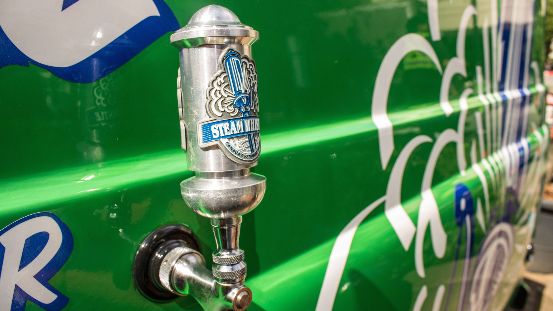There are two of these Econolines currently in service, and they’re the pick of the bunch because of the twin tap handles on the sides – the brewery even sells 10-packs of cans in a van-shaped box. While the rest of the fleet is kept back East at the brewery, Steamy spreads the good cheer around my hometown of Vancouver. I met up with Steam Whistle’s Lee Brymer at a storage locker south of downtown, and we took the Best Ford In The World out for a drive.