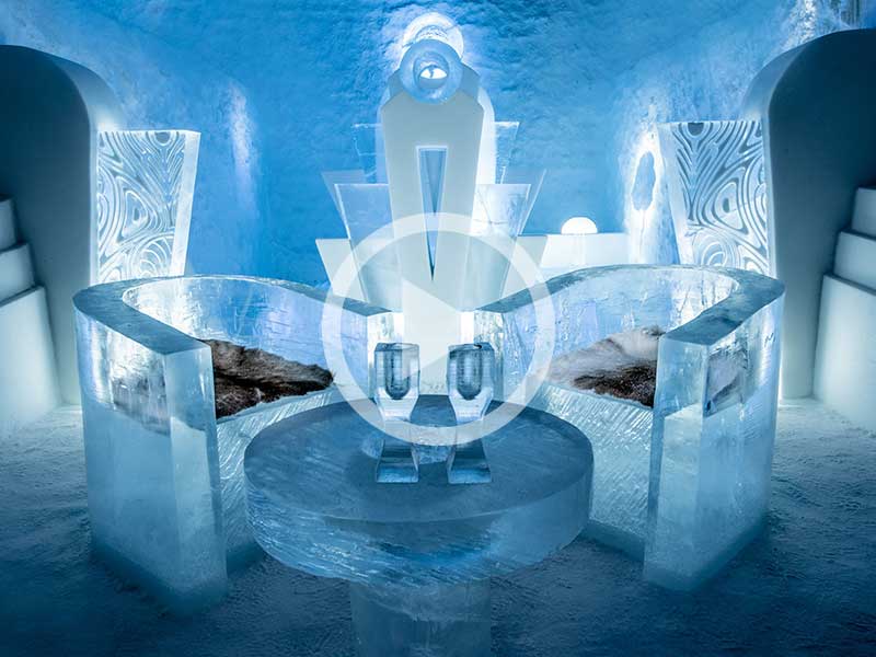 In addition, architects create “snice” a slushy mixture of snow and ice that they spray into bolds to build the ideal Icehotel. Once the Snice hardens, the molds are removed and the Icehotel comes to life. When all is said and done, the entire construction process is six weeks.