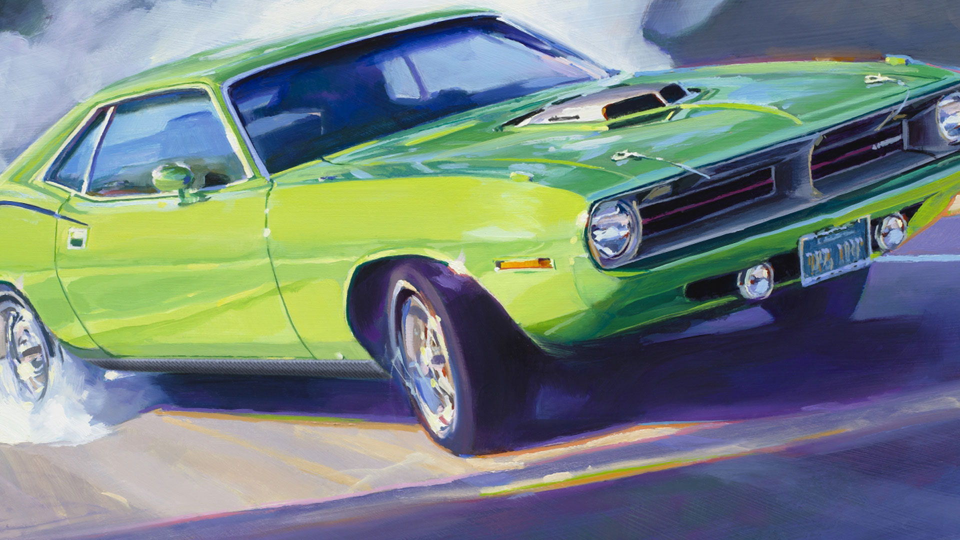 Born in 1919, the son of Walt Disney animator, Fitzpatrick paid his way through art school in Detroit by cutting blueprints at night in Chrysler’s engineering department. Art and engineering; the curved sweep of the imaginary and the straight line of cold reality. When he began working on car ads alongside background artist Van Kaufman, first with Mercury and later Pontiac, he’d combine the two disciplines to craft something wonderful. Fitzpatrick would spend days shooting a single car from all angles, spinning the turntable and finding the shot; he’d trace those photos, cutting apart the leftover to create width, length, presence.