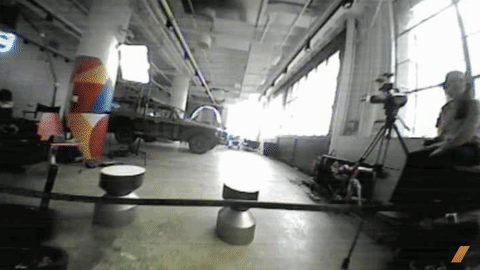 It’s a bird…it’s a plane…it’s Adam Weld and Andrew Siceloff racing the HoverBot Nano around the Showroom.