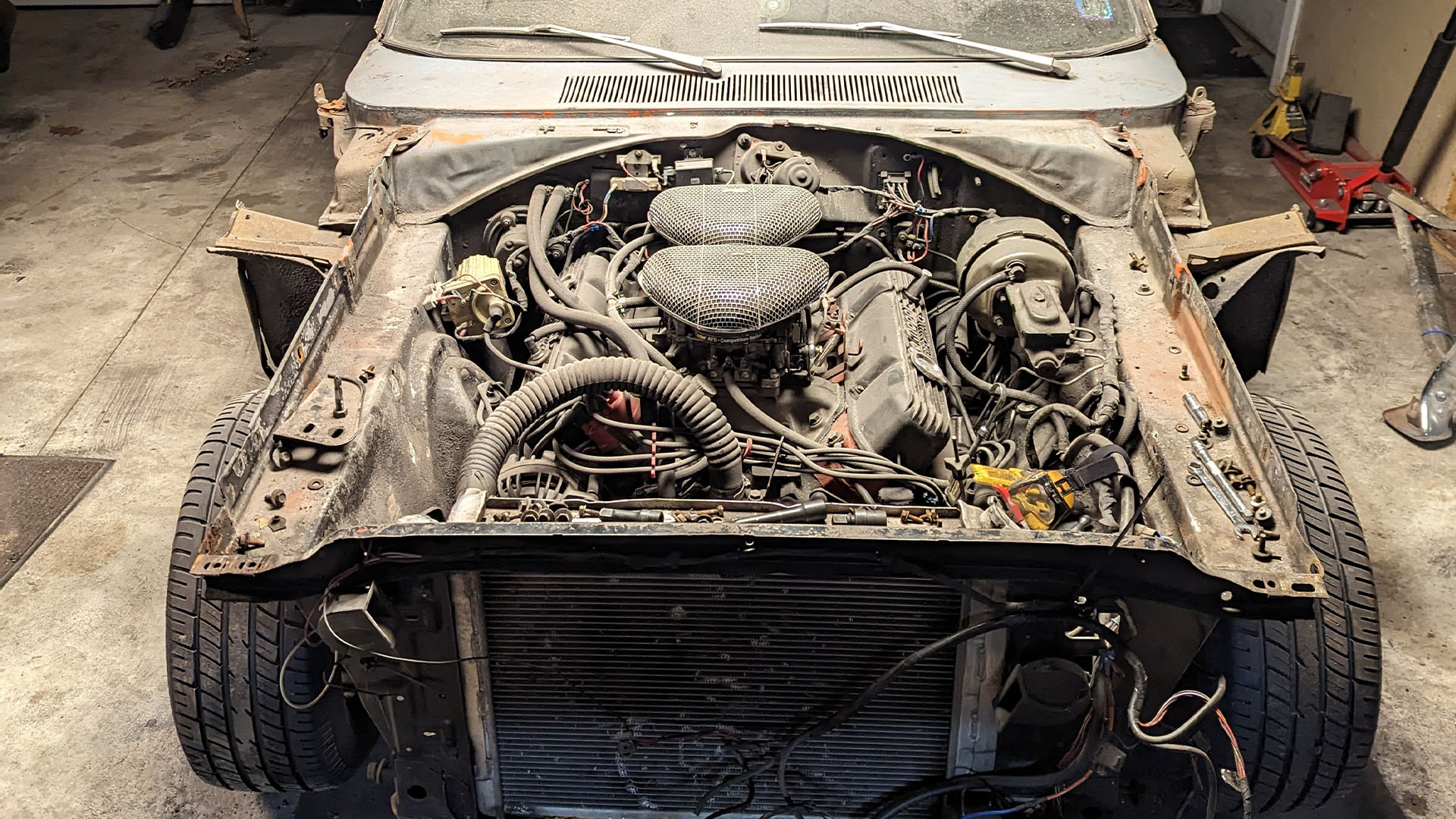 That doesn’t mean the hard work is over. I don’t want to dampen the excitement that’s coursing through me as I near the finale of this six-month thrashing session, but I still have a good bit to sort out with that motor-mount-eating heart I pulled from it. The paint is chipped and nearly non-existent, it’s leaking a bit of oil from the pan gaskets, and, of course, it twisted another set of stock mounts to death.