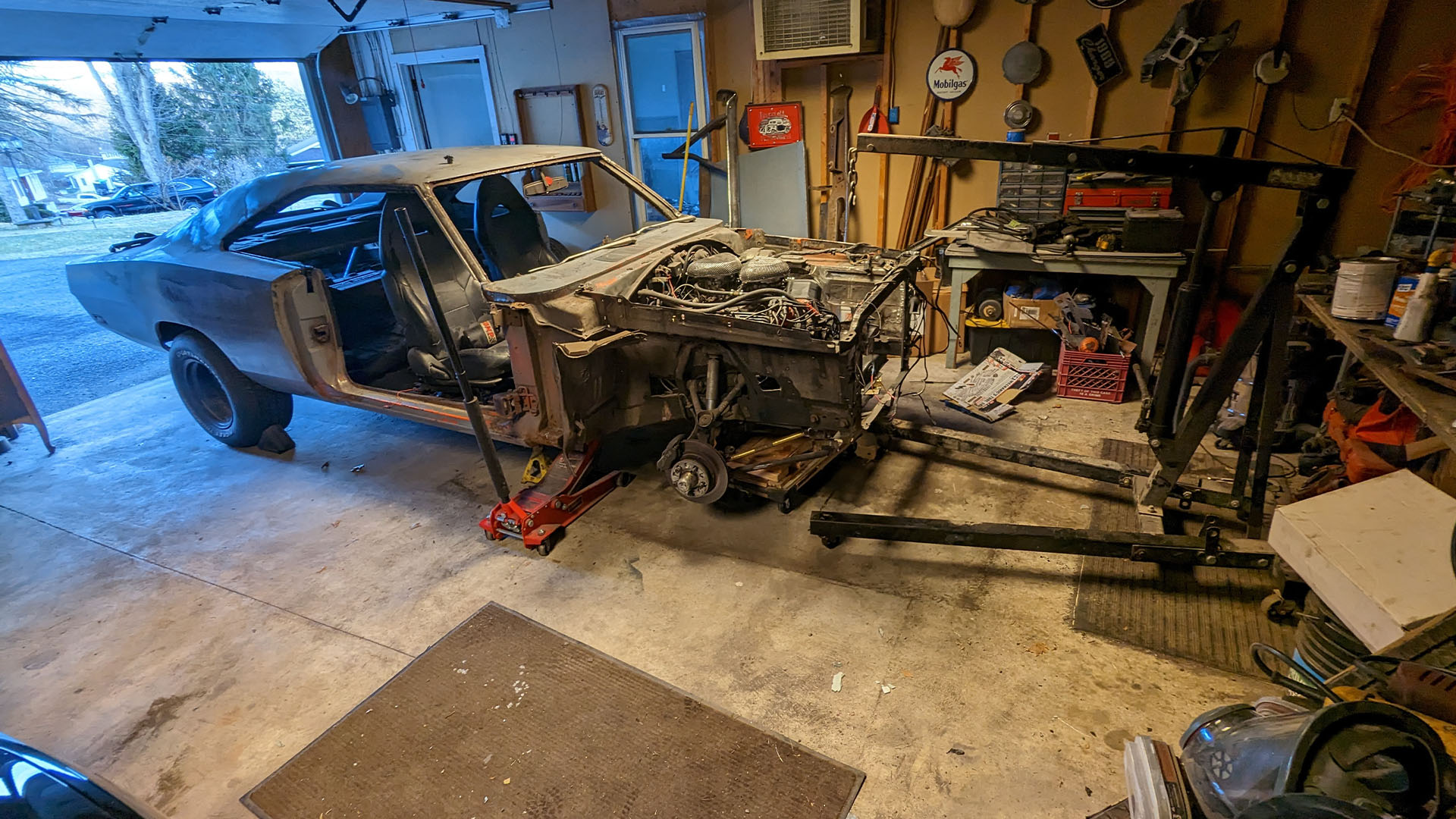 In the last 1969 Charger project car update, I mentioned that the engine needed to come out to access some rust on the firewall. The rust was minimal, but it was tucked down just far enough that the engine absolutely had to be absent for me to properly repair it the metal.