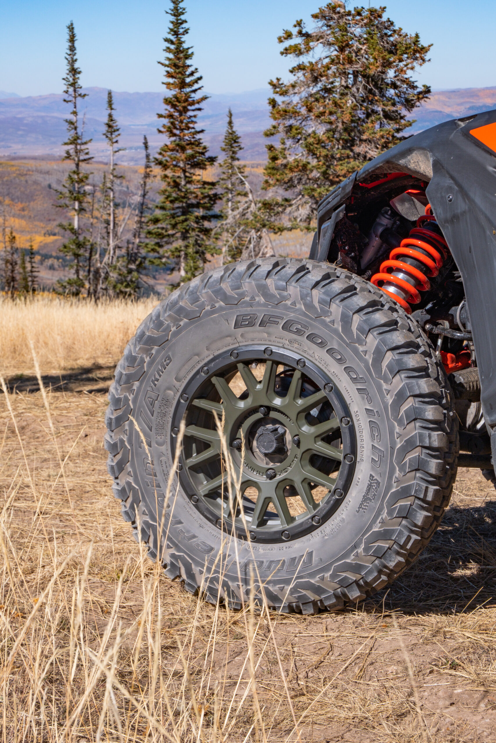 The stock Can-Am rims are 14 inches and I’d be moving up to a 15-inch wheel to fit the BFGs. What concerned me was the offset as our Maverick X3 Max DS Turbo R has a rear trailing arm that curves around the wheel. If I didn’t get the offset right, a 30-inch tire might rub against it.