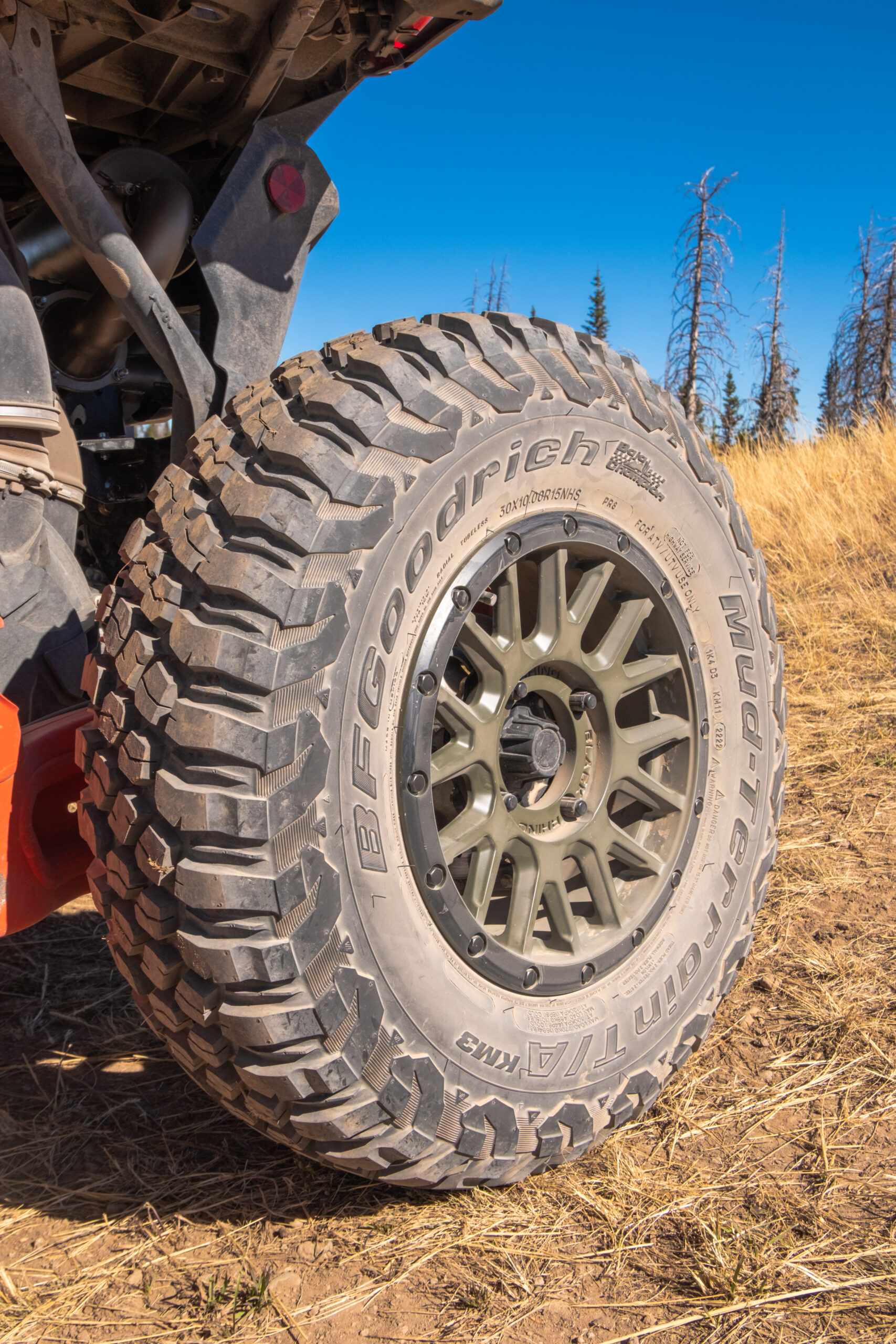 What I wanted was a tire that would still give me similar low-grip capability, but wouldn’t wear as quickly, be stronger, and wouldn’t be nearly as loud as the Maxxis’. BFGoodrich answered the call with a set of 30-inch MudTerrain T/A KM3 UTV tires.