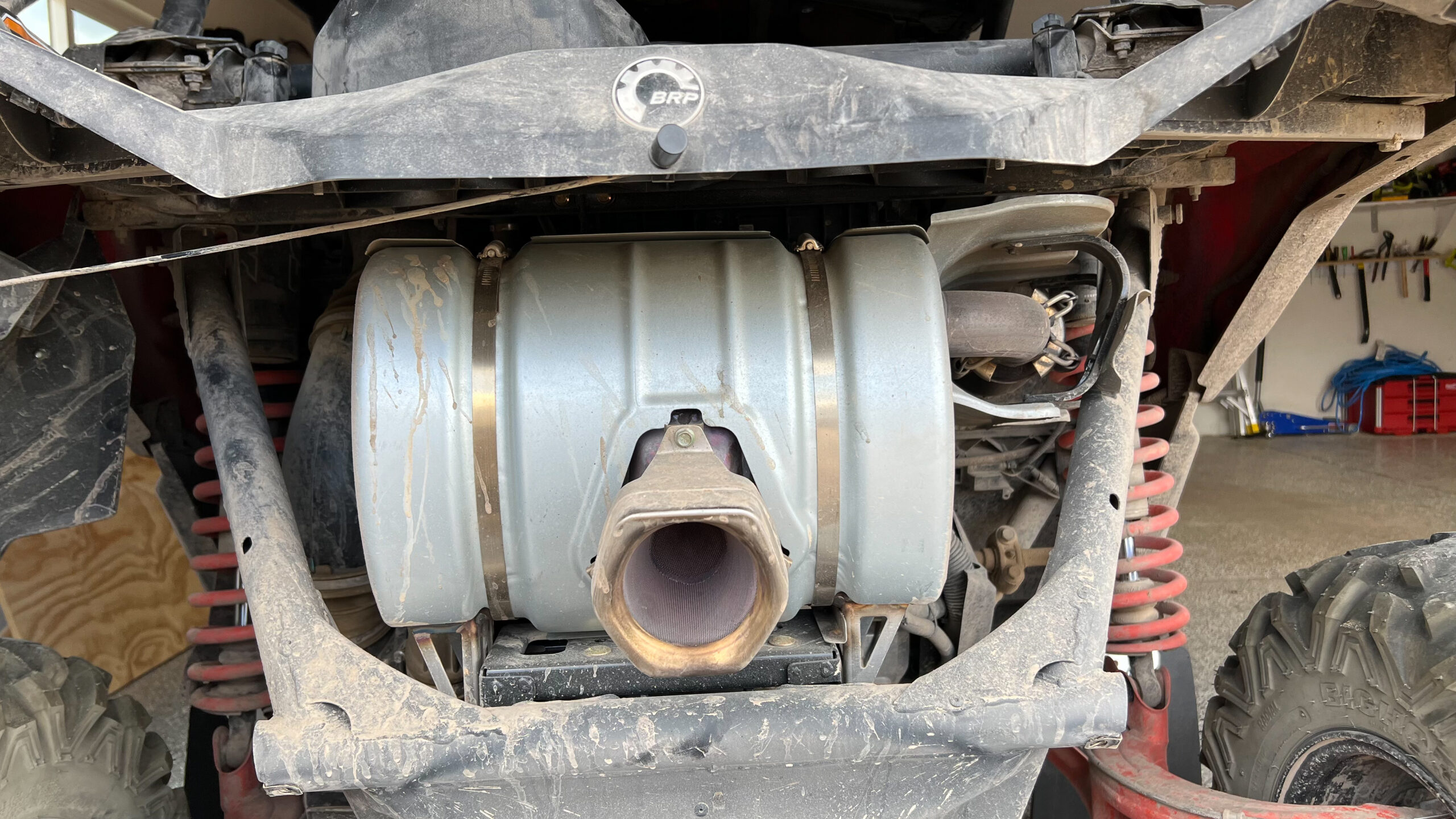 There’s been an exhaust rattle since we purchased the Can-Am a year ago. I’d asked the dealership to look at it, but they couldn’t find it. I’d ripped the rear of the UTV apart and couldn’t find it either. And every damn screw or bolt was as tight as I dared tighten it to try and alleviate the issue. There was also this reverberative resonance whenever I lifted and let the engine braking slow the Can-Am.