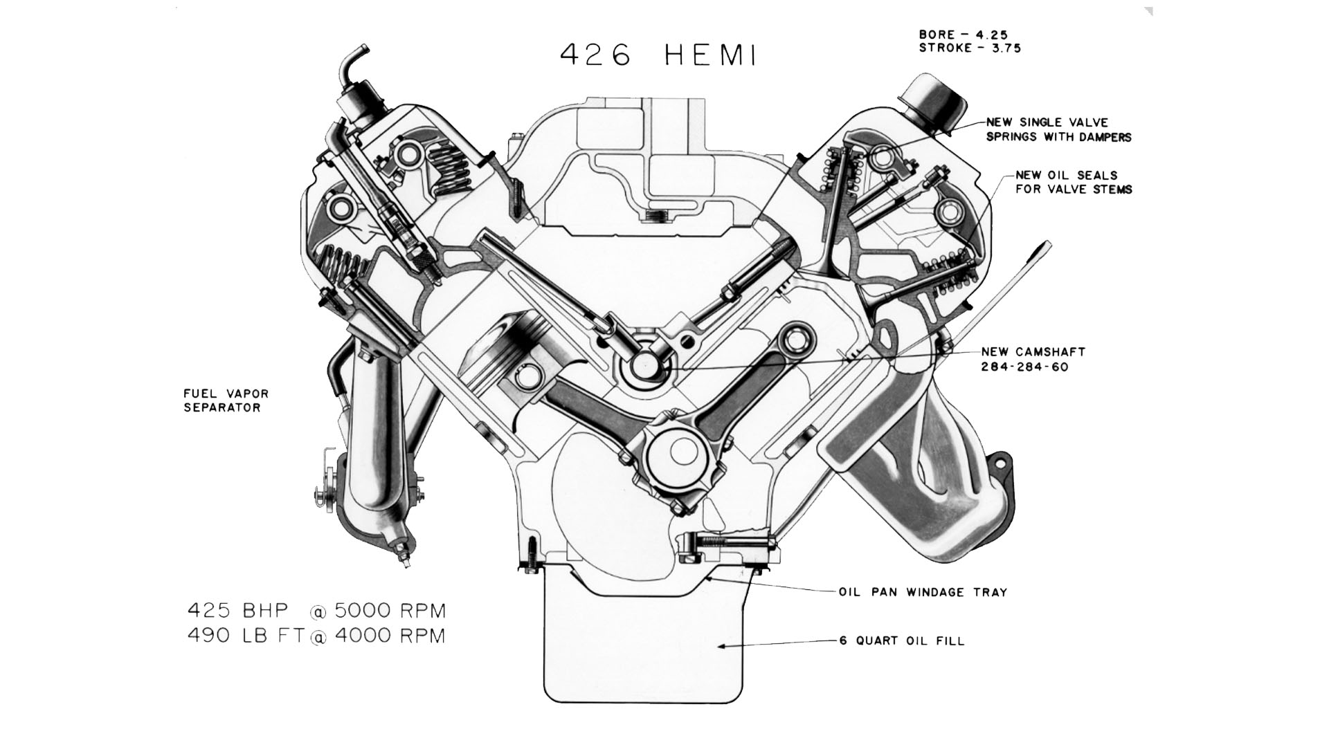 This prototype proved the potential of the hemispherical combustion chamber. Its ability to deliver more power more consistently than similarly sized engines with other combustion chambers is something Chrysler would turn to just a few years later for its high-performance street engines.