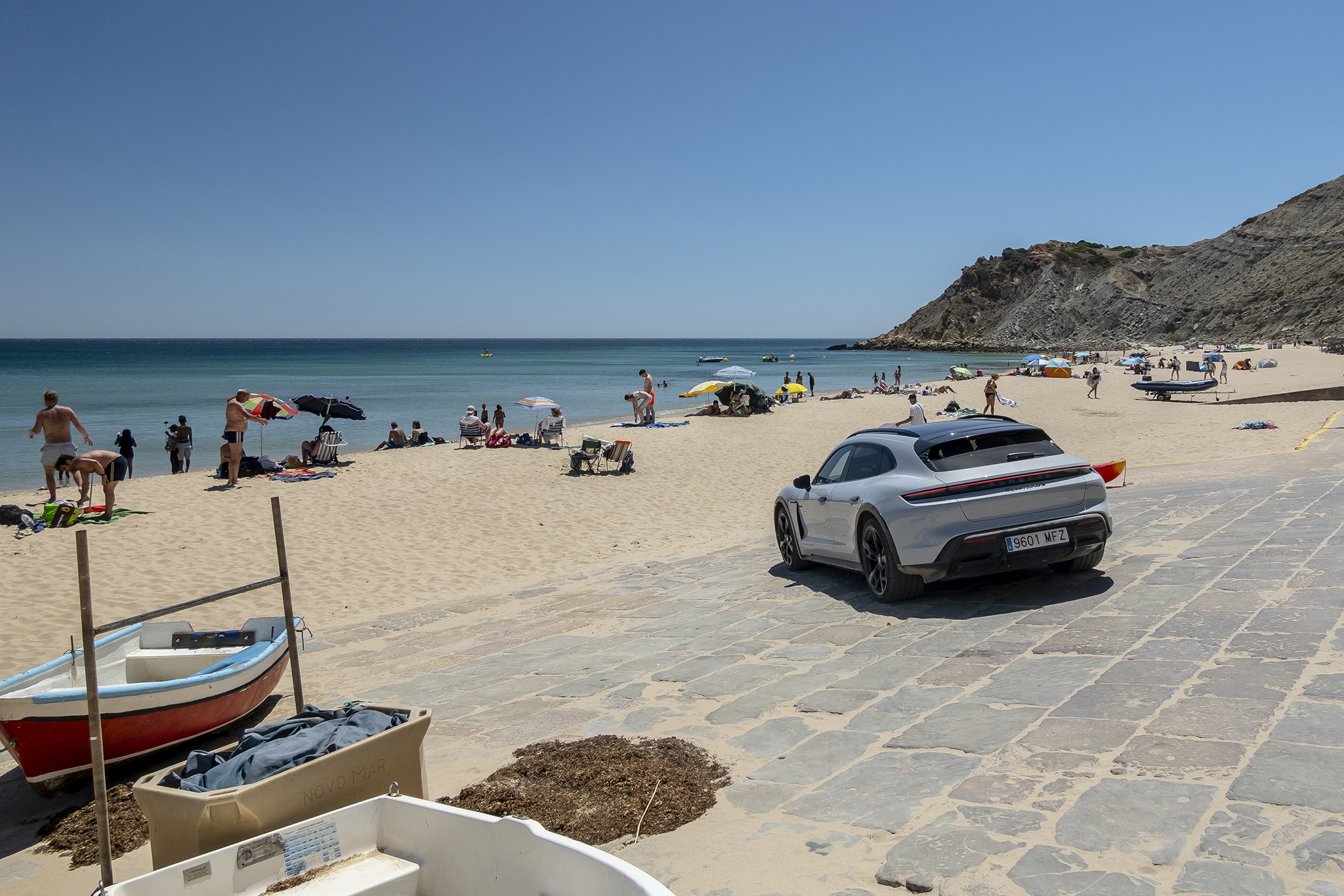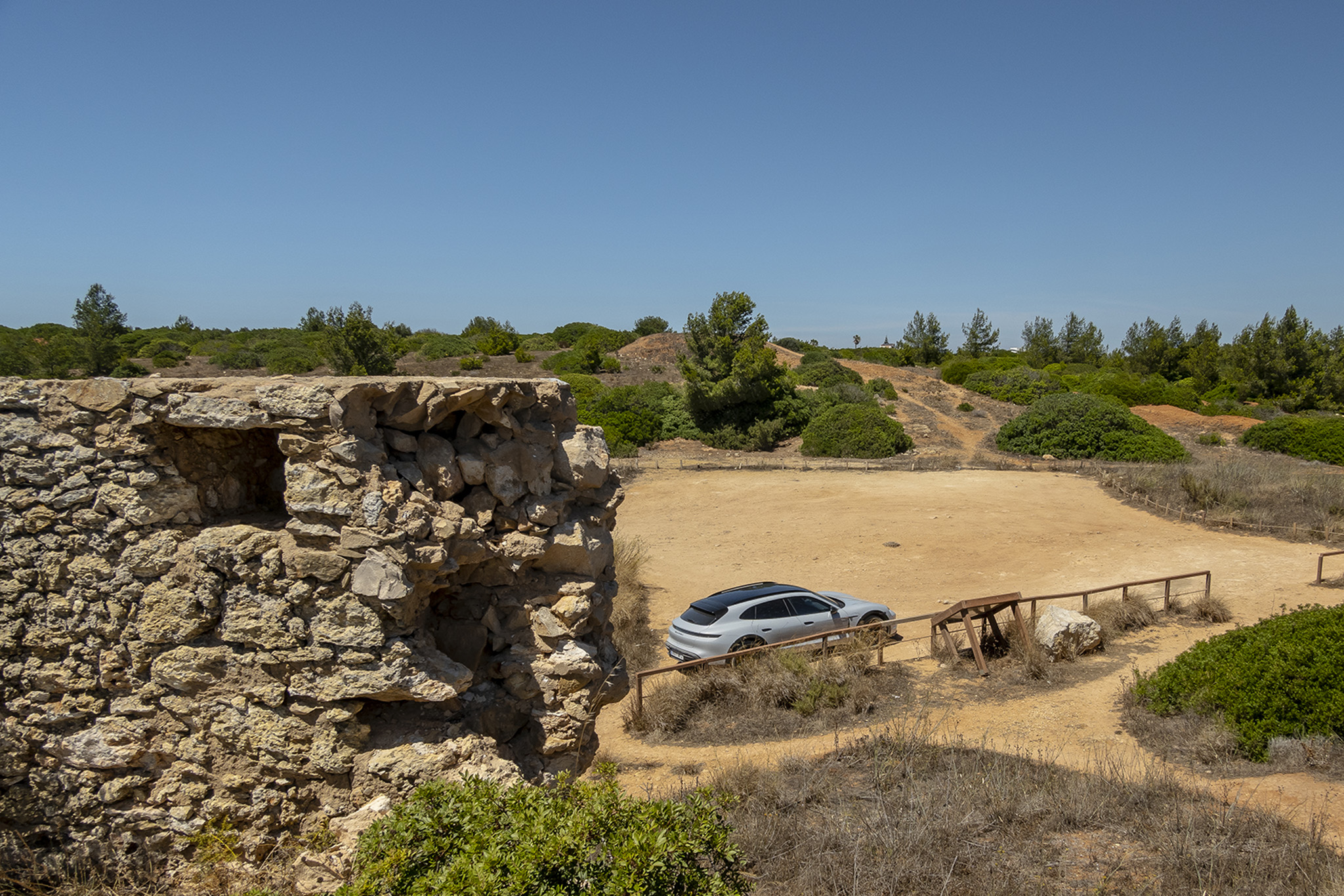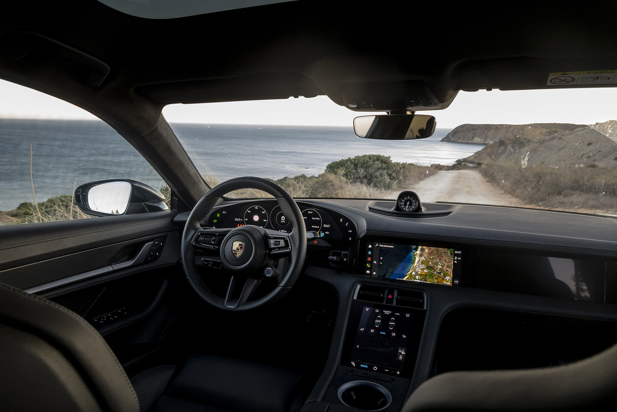 After our drive from Lisbon down to the Algarve coast, we had about 93 miles of range out of the 221 miles we started with. Plugged into a regular outlet with the Porsche Mobile Charger included in the trunk, the Cross Turismo was able to pull 1.2 kW, which resulted in roughly 20% range increase while charging overnight. That turned out to be more than enough to cover the local explorations we had planned each day, especially while running the Taycan in Range mode.