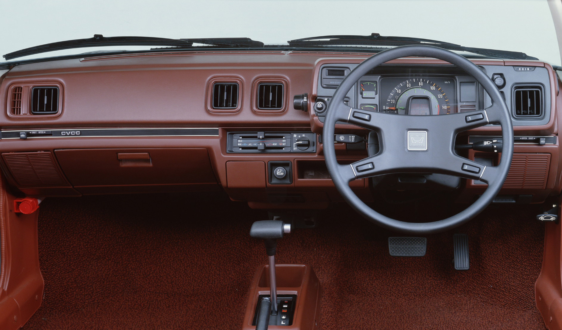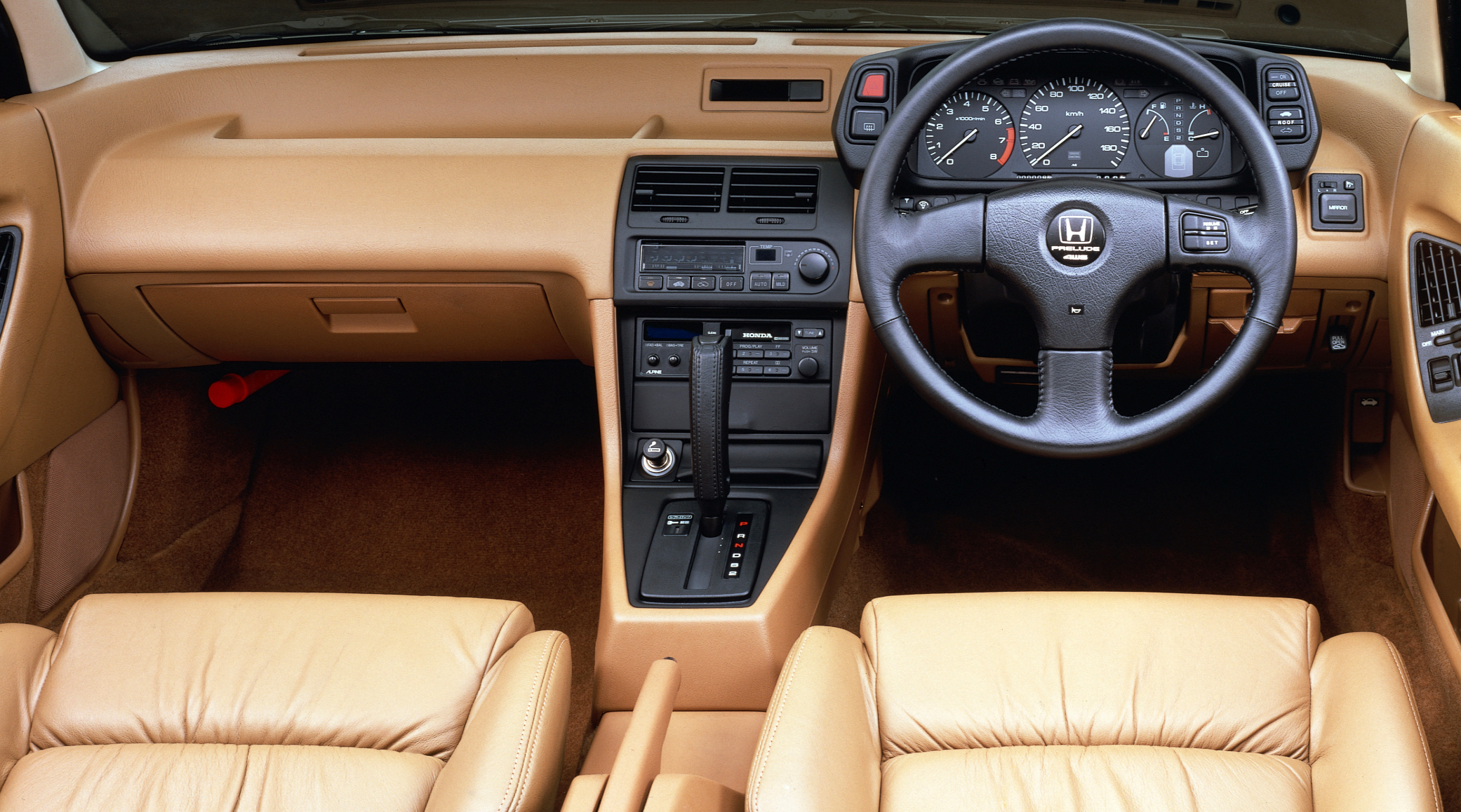 It’s hard not to be charmed by the quaint design of that first-gen coupe, which launched in 1979. The one in Honda’s fleet was a manual of that very vintage. It sure felt old, wheezy, and rattly, with its carbureted 1.8-liter four-cylinder generating all of 72 horsepower and 94 lb-ft of torque. It also lacked power steering, which mostly made parking a pain. But what struck me the most—and what would become a theme of all of these old Preludes—was its interior.