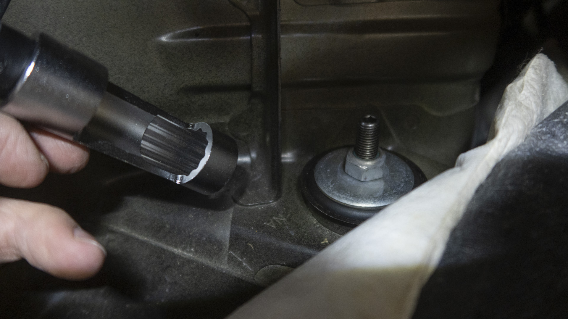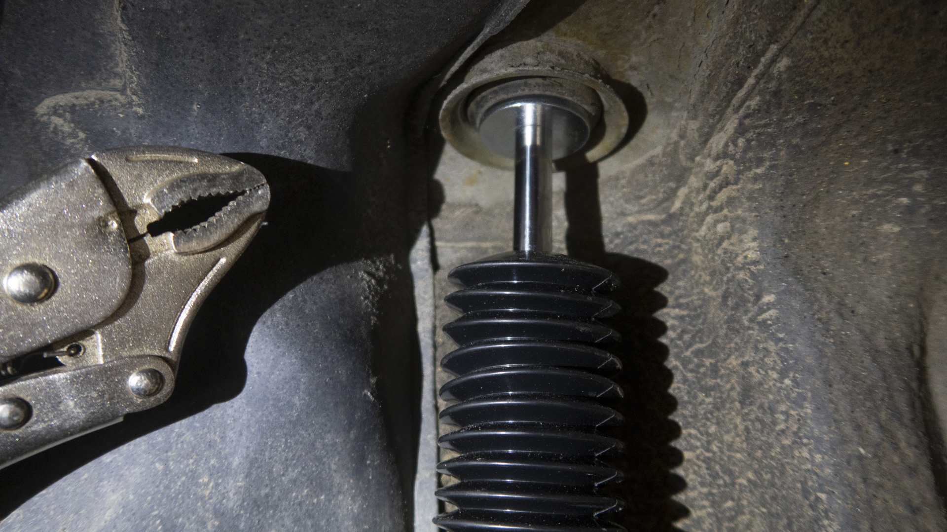 The other procedure I found strange was torquing the top of the rear shocks. Typically, rear shock rods have a hex key imprint, which allows you to put an Allen wrench in it and secure it while you spin the nut with a special socket. With the Fortune Auto setup, I had to grip the shock rod with a Vise grip, again, wrapped in a microfiber cloth.