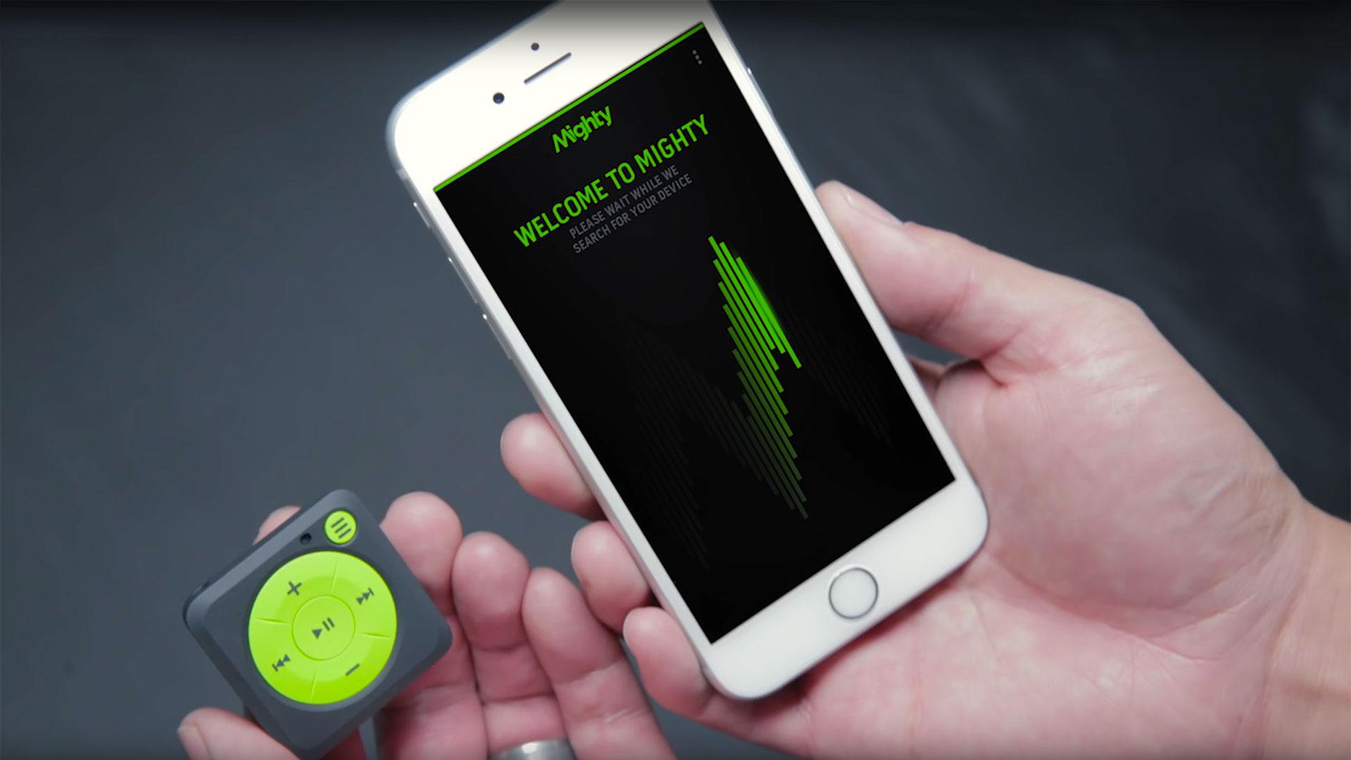 Here’s how it works: While connected to Wifi, turn on the Spotify app as well as the Mighty app. Queue up a Spotify playlist, or several, since Mighty has the capacity to stream up to 48 hours of music and download them for offline play. Because you’re linked to the Mighty device over Bluetooth, all those tunes will begin to port over to the tiny, 1.5-inch box even as they’re downloading. Within the Mighty app you can manage the playlists to add or delete them. (There’s no screen on the $79 device because screens are expensive, hence the need for an app instead.)