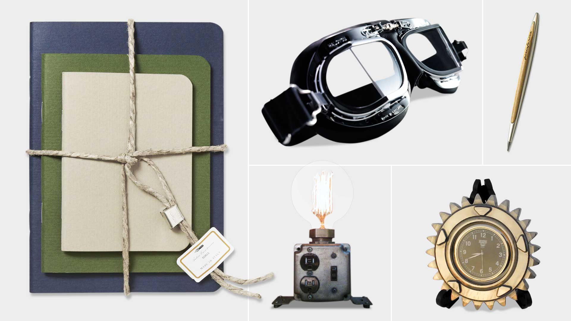 The great thing about paperweights? Anything can be a paperweight, should it have the requisite heft. These chrome, leather and glass vintage-style goggles from Bentley do the trick. They’ll also come in handy once you climb the ladder and succumb to buying that Morgan 3 Wheeler.