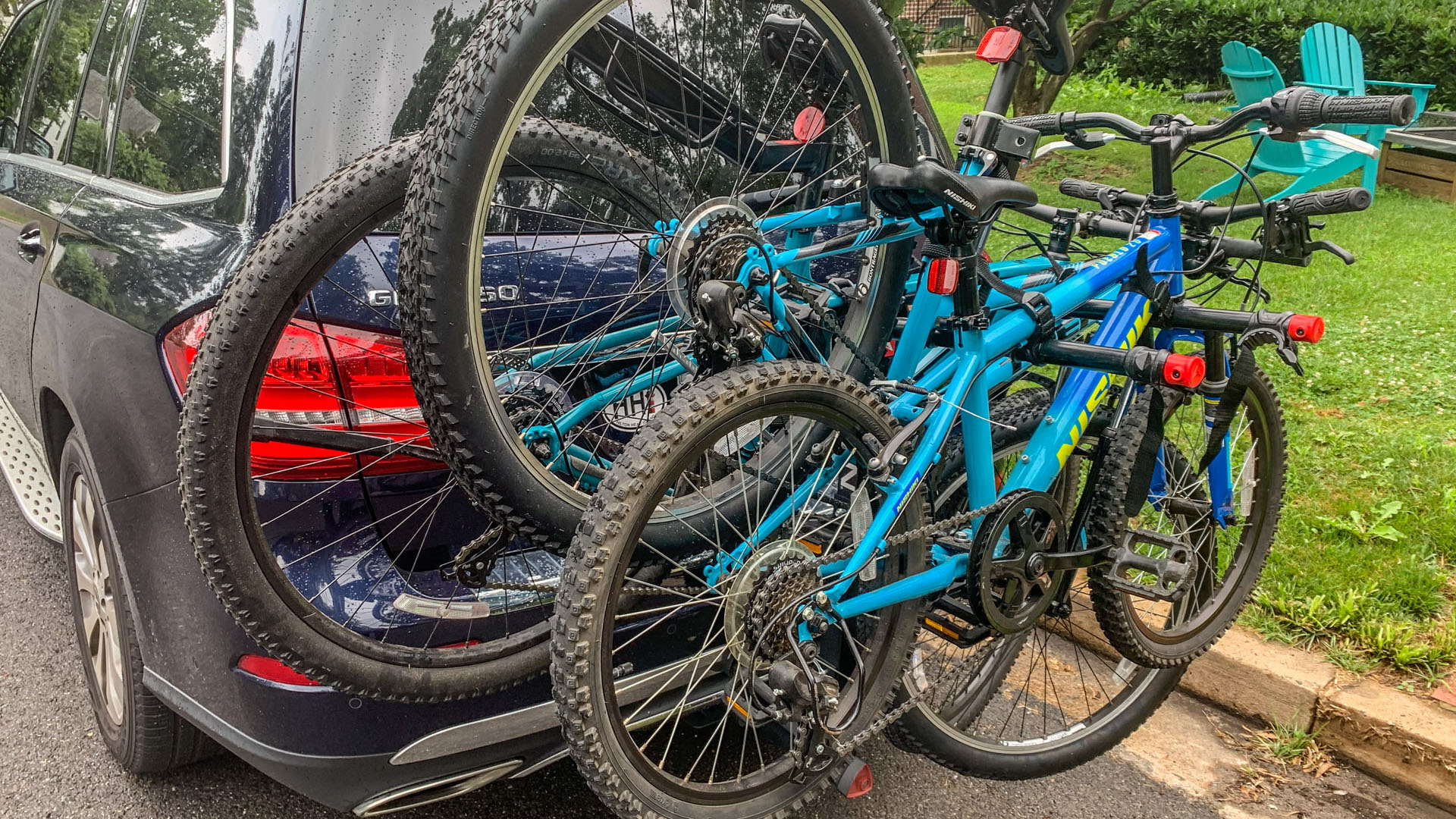 Using the Allen rack isn’t without some headache. First, getting the bikes on is challenging from a spacing perspective. At 26 inches long, there are only about four inches of space between each bike. I’ve only ever had two adult bikes and one kid bike on ours. I couldn’t imagine trying to cram four big-people bikes on there.