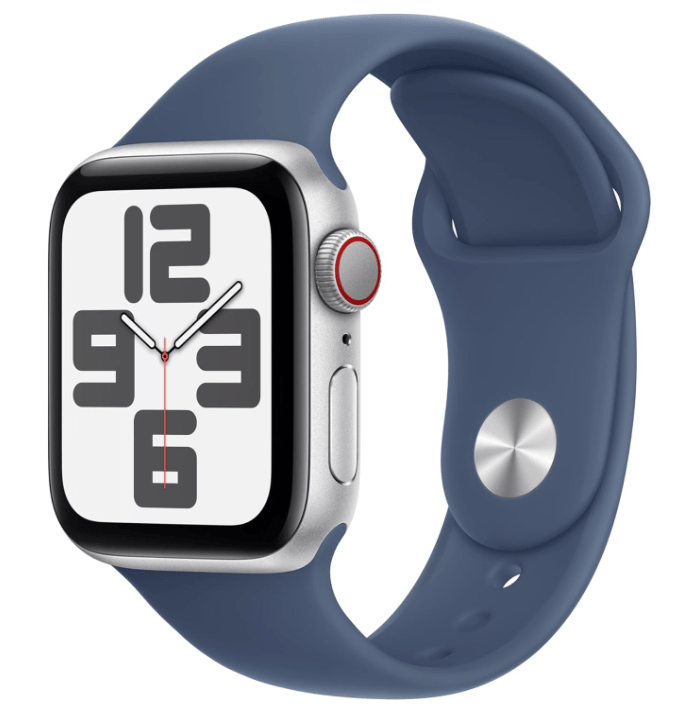 See ItApple Watch SE (2nd Gen) [GPS + Cellular 40mm] Silver Case with Denim Sport Band for $219.99