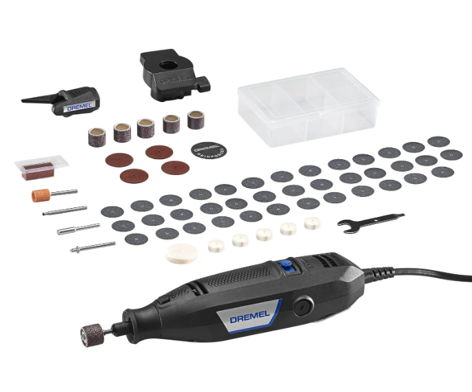 If you want a basic, simple to use Dremel for an extremely affordable price, this Cordless 4V Li-ion battery powered kit for $27.99 is tough to beat. It charges with a USB cable and works great for hobbyists and will do some light metalwork. It’s pretty light on accessories, but you can buy just what you need with the money you save.