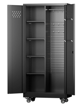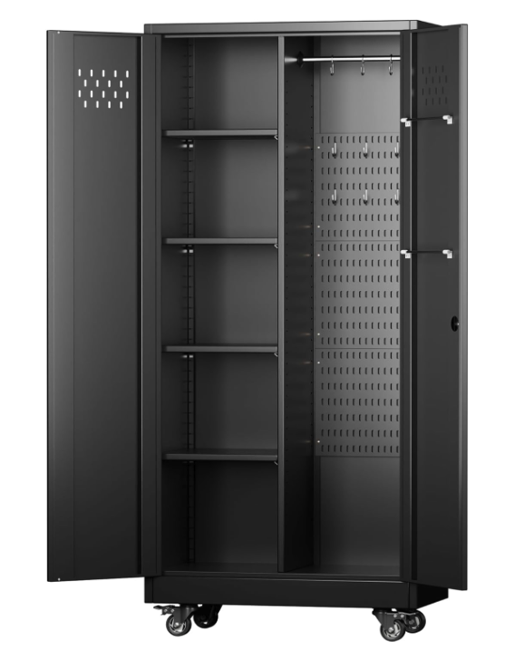 See ItGLADIW Metal Storage Cabinet with Lockable Doors and 4 Adjustable Shelves, Lockable Casters for $172.79