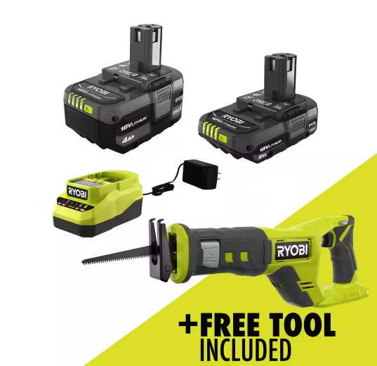 See ItRYOBI ONE+ 18V Lithium-Ion Kit, 2.0Ah and 4.0Ah Batteries, Charger for $79.00 with a free reciprocating saw
