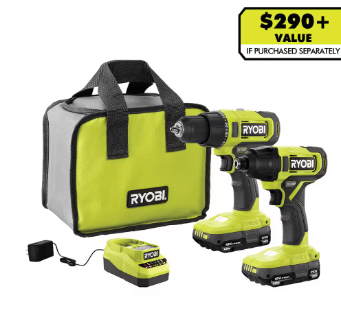 See ItRYOBI ONE+ 18V Cordless 2-Tool Combo, Drill/Driver, Impact Driver, (2)1.5Ah Batteries, Charger for $99.00