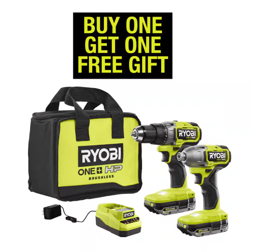 See ItRYOBI ONE+ HP 18V Brushless Drill/Driver and Impact Driver, (2)2.0Ah Batteries, Charger, Bag for $199.00 and pick a free tool