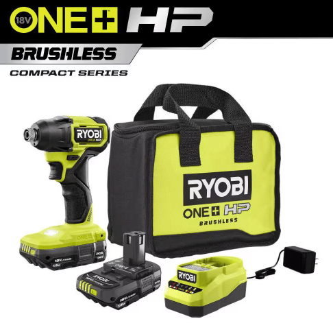 See ItRYOBI ONE+ HP 18V Brushless Compact 1/4" Impact Driver Kit, (2)1.5Ah Batteries, Charger for $89.00