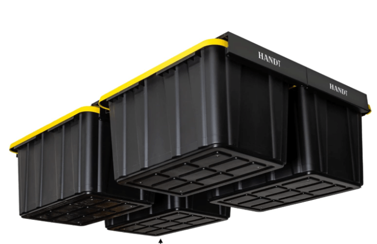 See ItHANDT Overhead Garage Storage, Ceiling Racks, Bin Organization System for $63.97