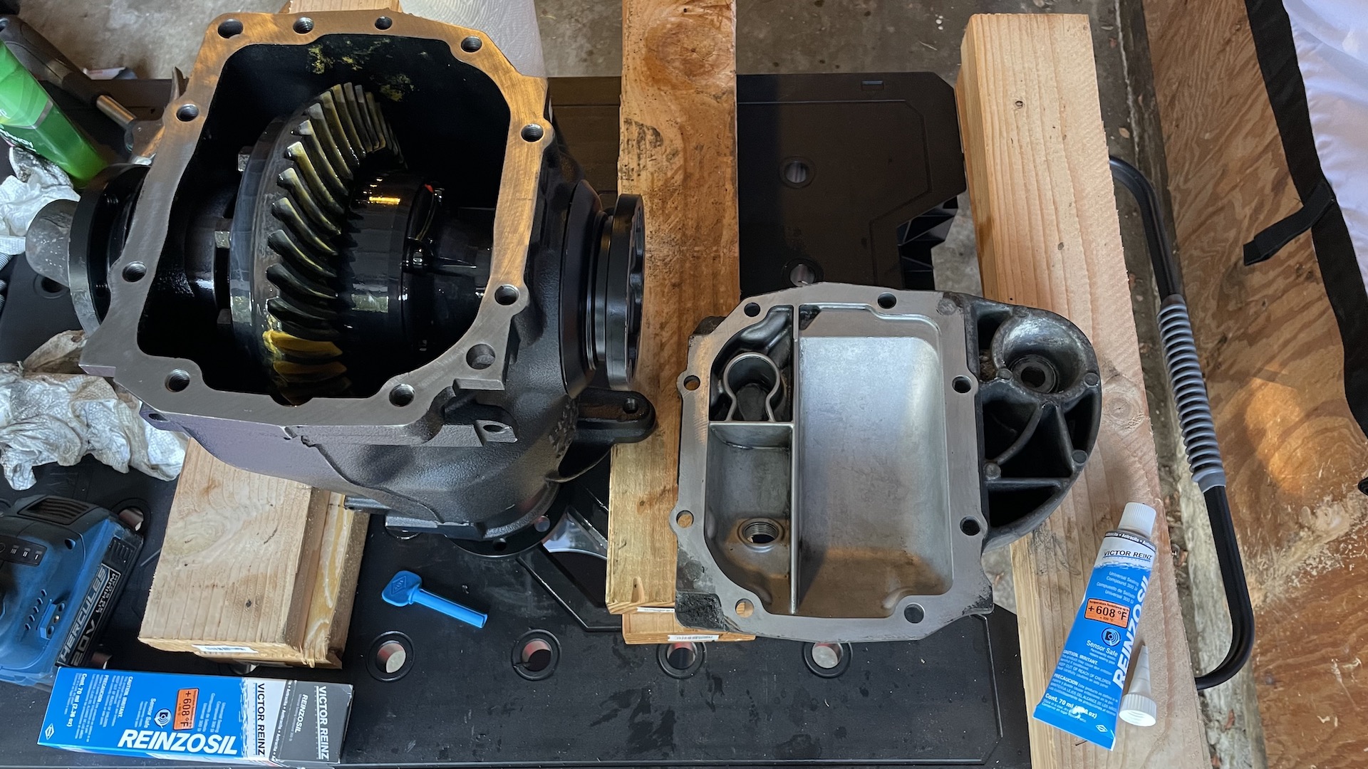 I then moved the old diff out of the way, put the new diff in its place, and poured in the correct amount of recommended 75W110 full synthetic Red Line gear oil.