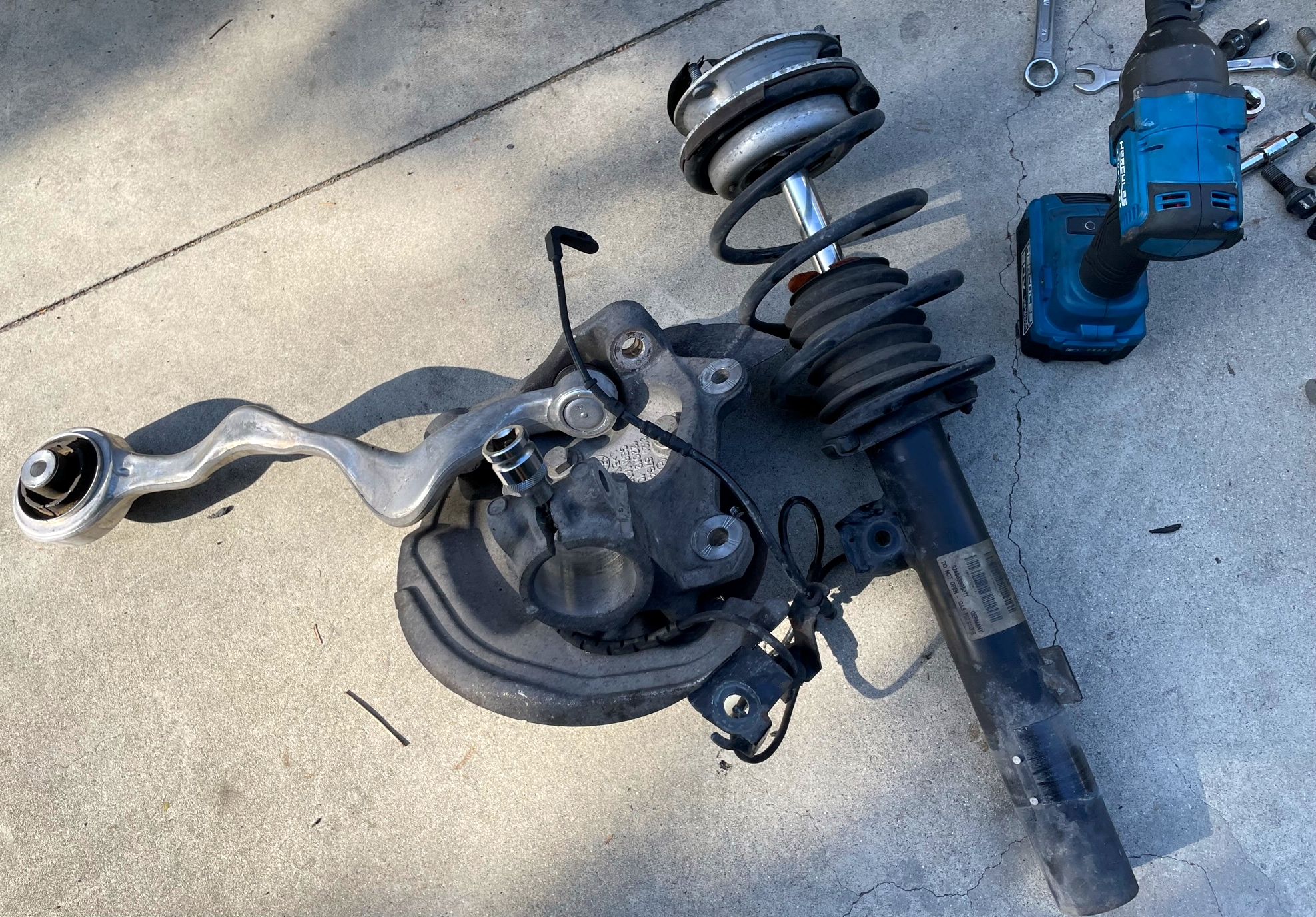 Doing the swap was generally straightforward, but for a simpleton like me who’s used to econobox front MacPherson strut designs and twist-beam rear suspension, doing this job on a BMW 128i was an annoying pain.