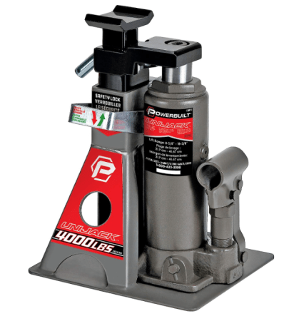For jack stands, the OTC 22-ton jack stands for $250.87 will hold your car, your neighbor’s car, and smallish fast food restaurant. The Big Red Torin heavy-duty 3-ton jack stands for $29.99 will probably do everything you need them to do. I’ve never used the Powerbuilt 2-ton UniJack combination hydraulic bottle jack/jackstand but for those of us who normally work on unibody cars and have struggled to find a jack point and then also support points for the stands, these look great. Jack the car up, lock them in place, and you’re all set.