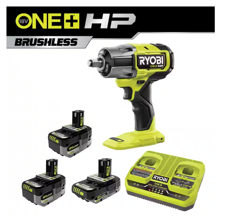 - Ryobi One+ HP Impact Wrench Kit for $486.20 Plus Free Battery at Home Depot