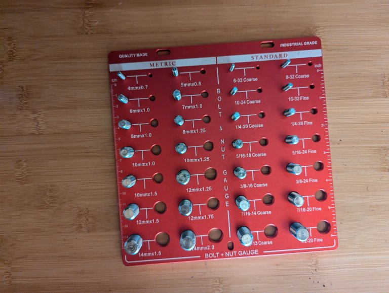 See ItAfter deciding it’s finally time to jump in and tackle the countless coffee cans of spare bolts I have lying around, I bought the Stochastic Box Nut and Bolt Thread Checker for $23.98. To be honest, I didn’t really read the description because it was one of the cheapest ones I could find, and I impulsively bought it. It turns out that this thing is so much nicer than I’d thought it could be. It’s built with stainless steel, has a nice rust-resistant anodized finish, and has all of the threads clearly labeled. It’s an absolute steal for the current sale price. This particular version allows you to check a total of 28 male and female threads, but you can bump up to a 34-thread version for $43.21 if you want a little more coverage.