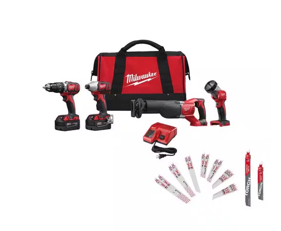 See ItMilwaukee M18 18V Combo Kit, (2)3.0Ah Batteries, Charger, Tool Bag, SAWZALL Blade Set – 18% off and pick 2 free tools for $469.00