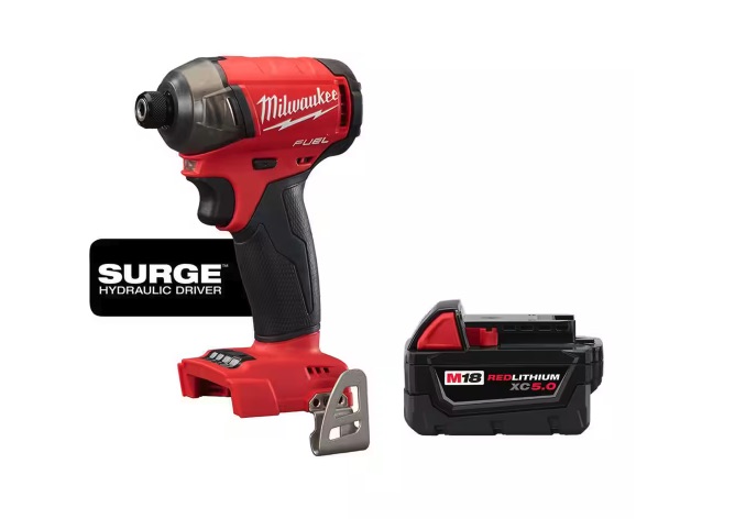 See ItMilwaukee M18 FUEL SURGE 18V 1/4” Hex Impact Driver, XC 5.0 Ah Battery – 47% off for $169.00