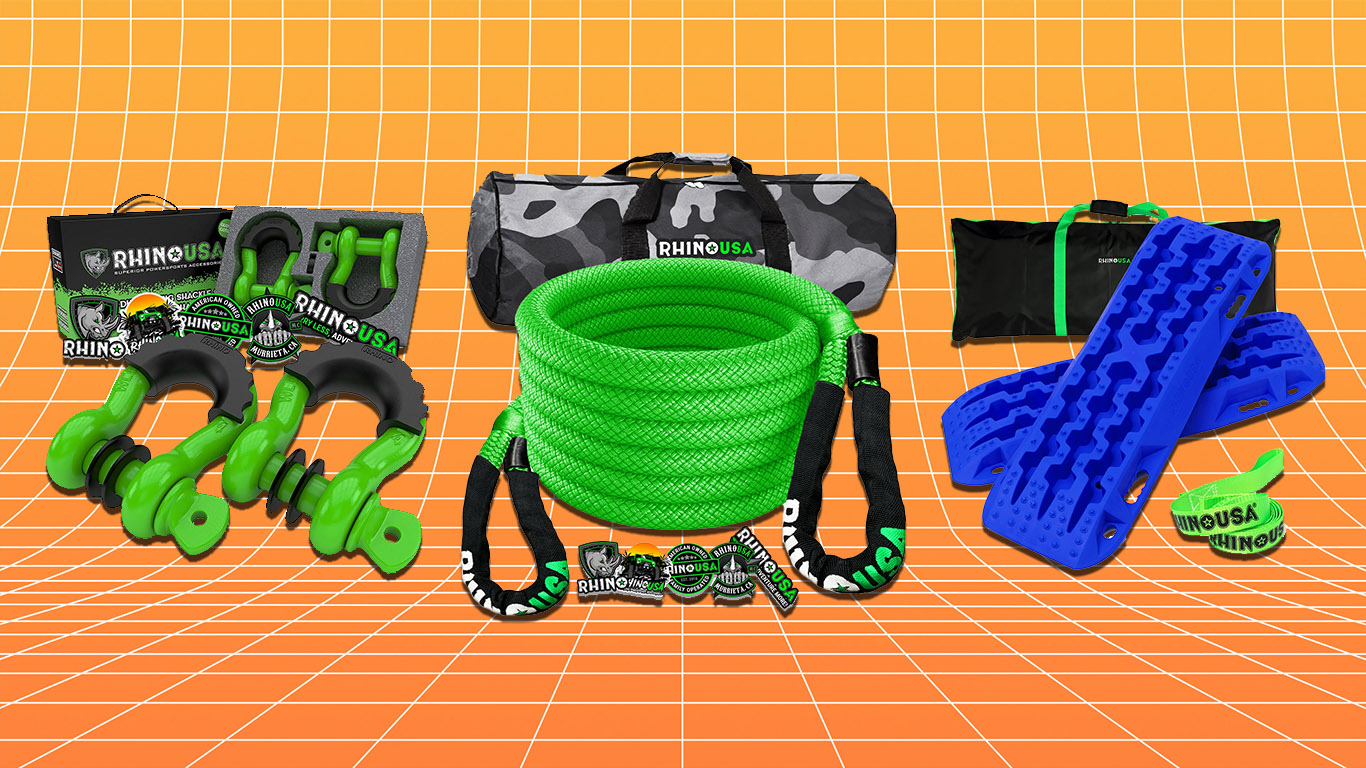 If you’re going to play around off-road, you can plan on getting stuck—even with an awesome set of tires. That’s especially true this time of year when a blanket of snow or ice is making things slippery. Heck. You can expect to get stuck anyway, even if you’re doing your best to stay out of sticky situations. It’s a good idea to keep some recovery gear onboard your winter beater. That way, you’ve got the means to free yourself and avoid potential catastrophe. And with Rhino USA’s killer deals on recovery equipment, you can get yourself unstuck for a fraction of the cost.