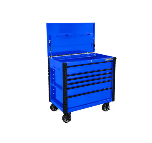 If you’re more interested in Kobalt boxes, you have some choices. The Kobalt 36-inch 6-drawer steel tool chest for $219.00 with a Kobalt 36-inch 5-drawer metal rolling tool cabinet for $279.00 is a great choice if you want something considered a more medium-sized home cab. But, it also comes in a variety of colors. The one caveat, it doesn’t look like all the colors are the same price, so pay attention when ordering. There are also some boxes from Xspracer down there, which are another affordable brand available at Lowe’s and The Depot. If you want something more along the lines of a tool truck brand, Extreme Tools has some premium boxes on sale.