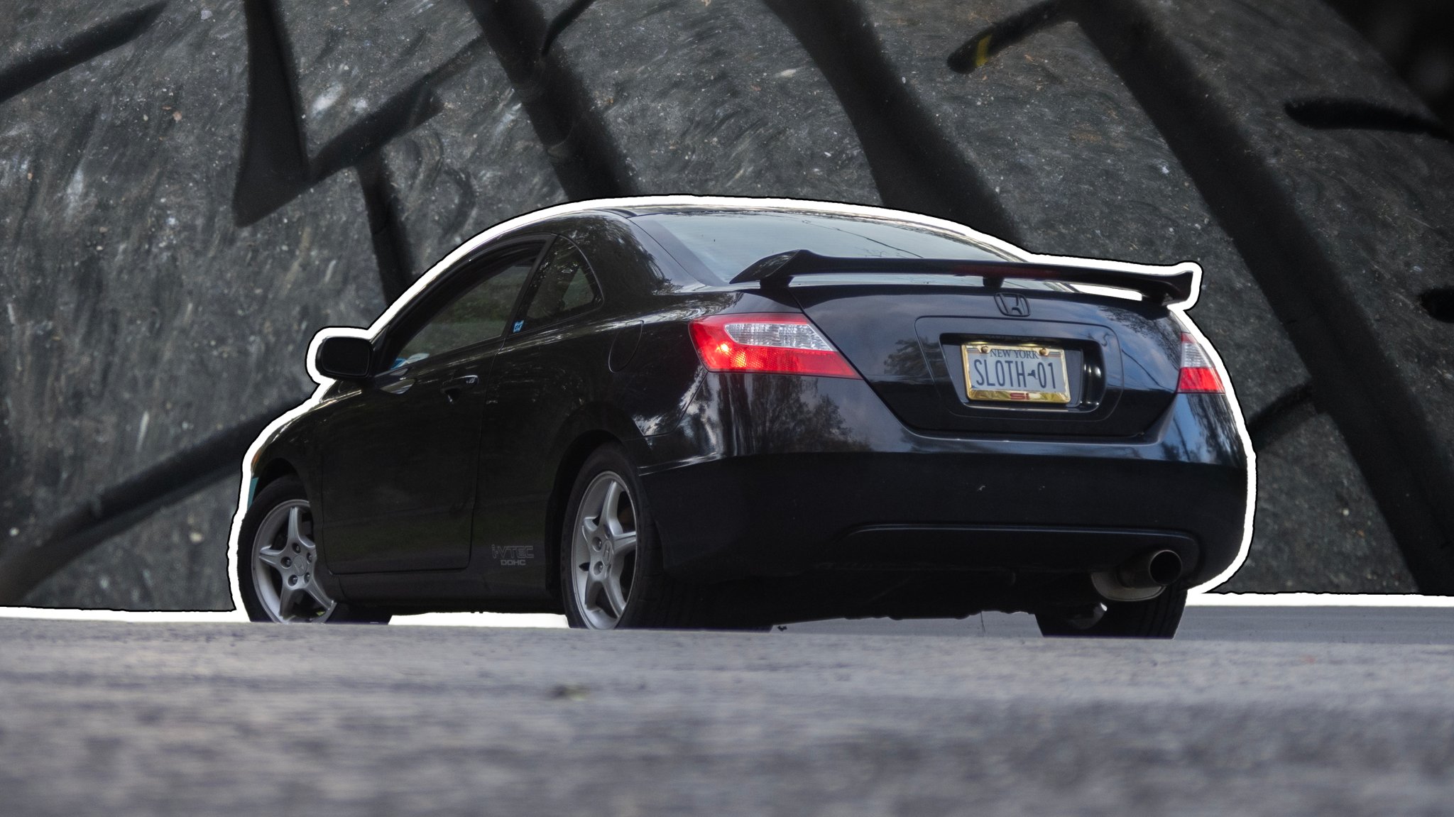 An eighth-gen Civic Si’s factory tire size is 215/45R17. I ran a set of Indy 500s in 205/55R16 on OEM 16-inch Enkei wheels from a Honda Prelude. That’s a pretty common size, but it does have a little more sidewall and smaller contact patch than what the Si is good for. The Prelude Enkeis also have a higher offset than the Civic’s stock wheels. That makes them a little more sunken into the car’s body.