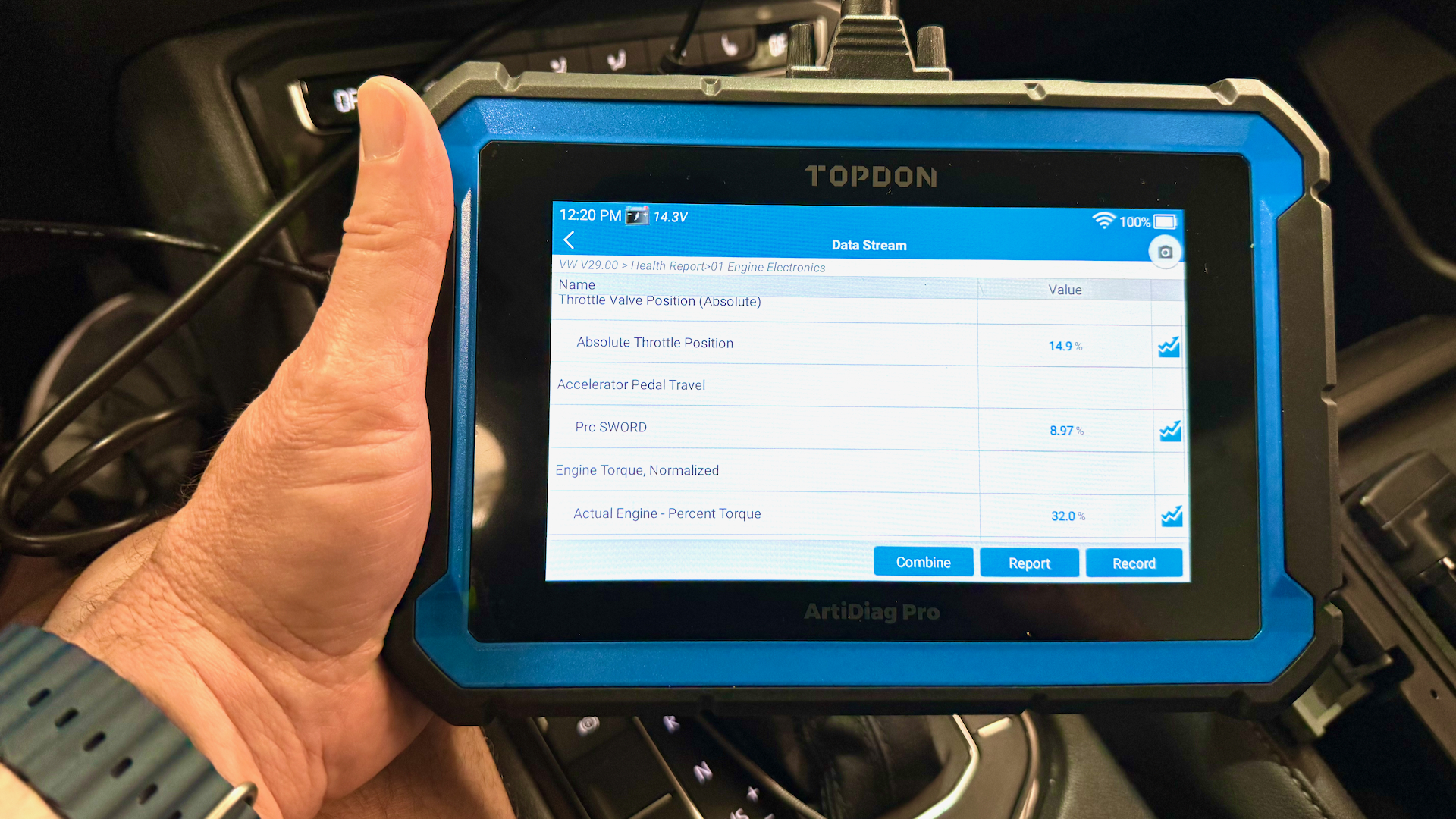 I’ve had a couple of OBD2 readers that could view some real-time data, but it’s hit or miss on what they can see depending on the make and model of the car. I’ve been using the Topdon to view every channel of data available. You can choose four to be displayed at the same time on the screen. You can even record them, so you can throw the scan tool on the floor and drive without having to worry about watching it.