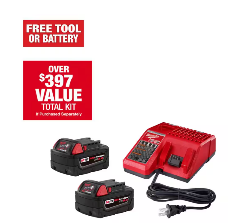 - Milwaukee M18 18-Volt Lithium-Ion XC Starter Kit for $199.00 Plus Free Tool or Battery