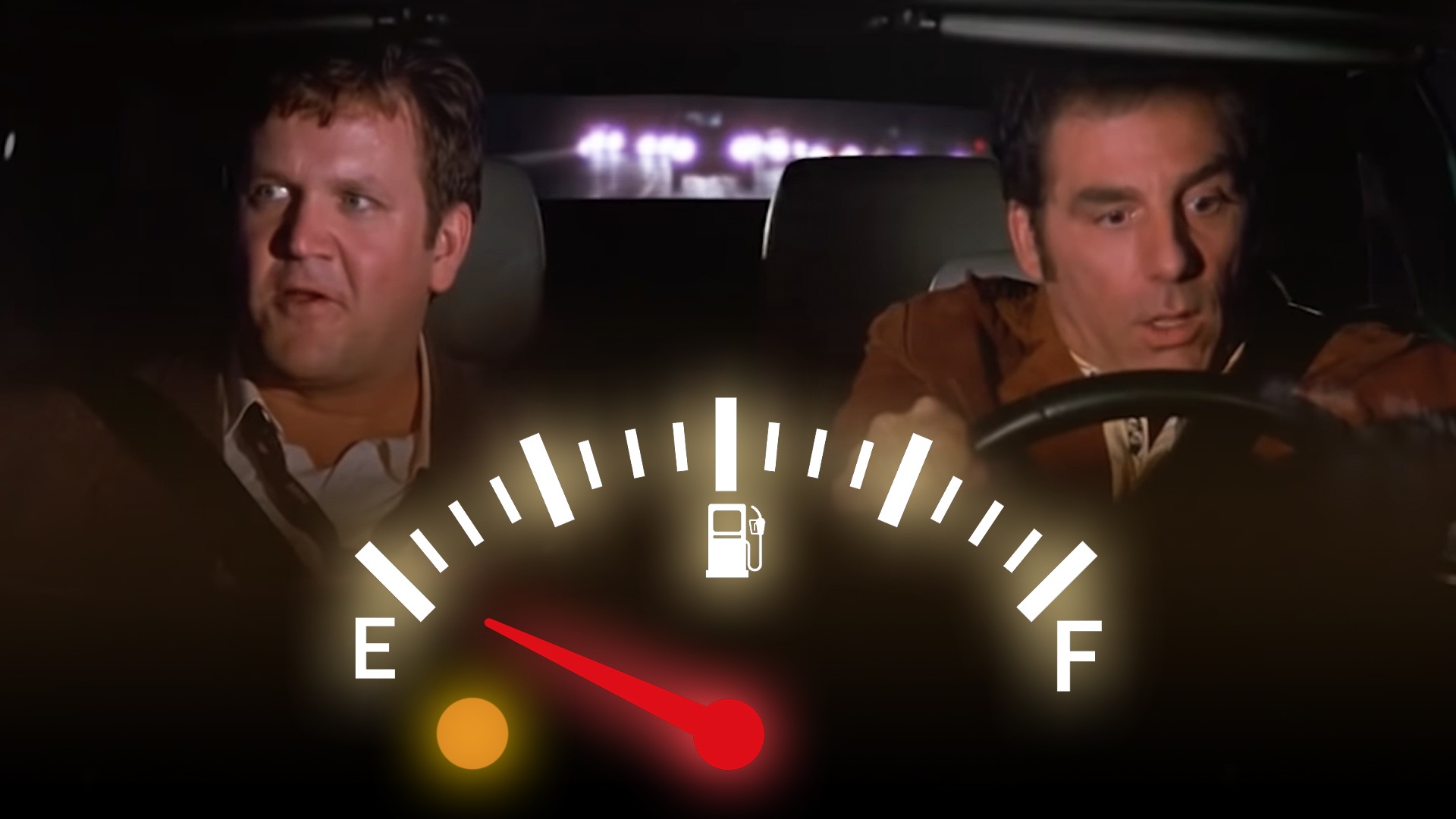 I’ve actually run out of gas a handful of times — a phenomenon that’s happening more lately according to some anecdotal reports — it’s a real pain and it’s not good for your car. But it does make the exact “cuh-luck cuh-luck cuh-luck” sound that running out of gas does in TV shows, which I found amusing when my RX-7 supported out in front of the Liberty Tree Mall in 2004. My dad, who had to get out of bed and come rescue me with a jerry can later that night, got less of a kick out of it.