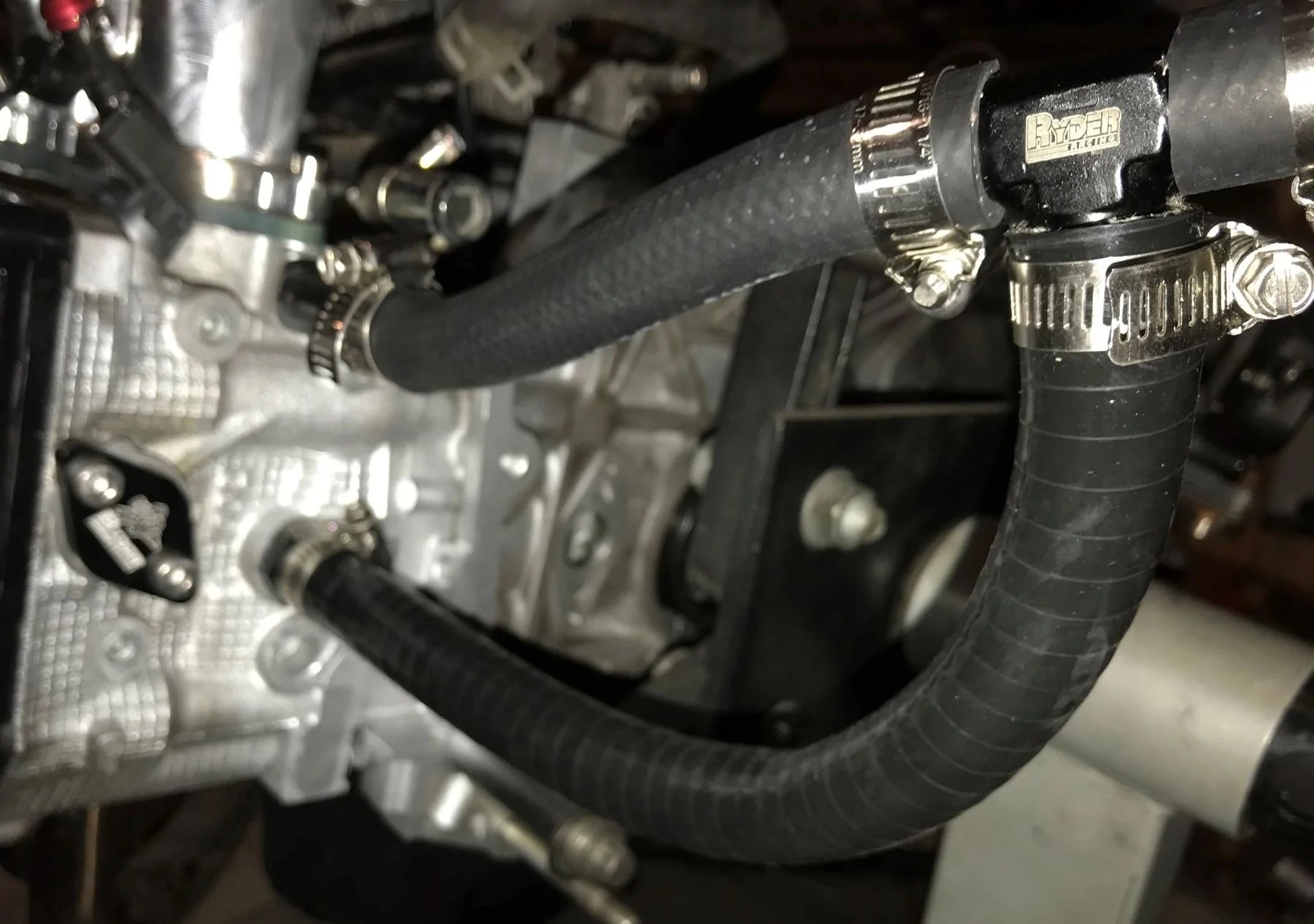 Doing the mod yourself at home is extremely simple, but a kit costs about $80 from a few different companies. The Ryder Racing kit is a good example of a kit, and it includes an NPT port for a temperature gauge. It’s a length of heater hose, a threaded AN (Army/Navy) to metric fitting that replaces a coolant plug, and a T-fitting so the cylinder four coolant can flow through the heater hose. Apparently, the heater hose that is being tapped into is under suction, which helps scavenge hot coolant from cylinder four. From my experience working at a Subaru shop under a proper ECU tuner, cylinder four sees the hottest temperatures under load.