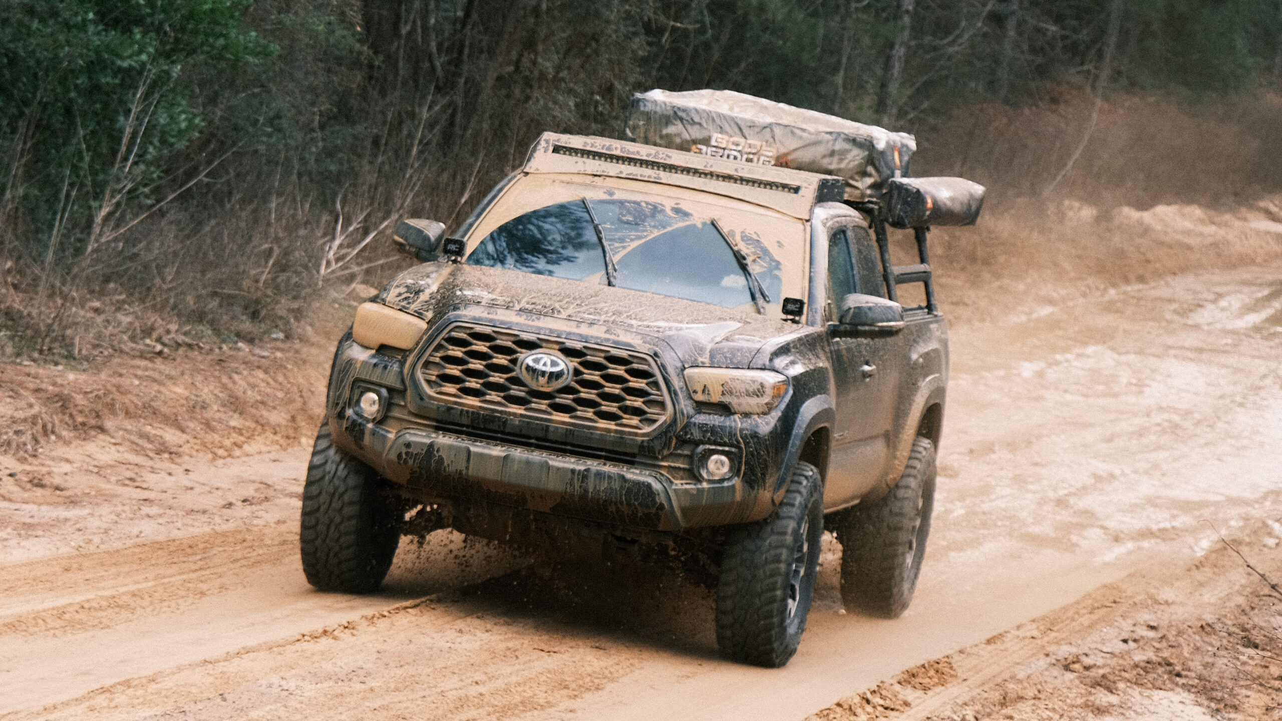 In this case, the shop turned a 2021 Toyota Tacoma TRD Off-Road into a light-touch overlanding rig with a few simple mods: a 2-inch Rough Country leveling kit, General Grabber A/TX tires, a Sky Bridge rooftop tent, lights, and a Jackery power station to juice up a few creature comforts.